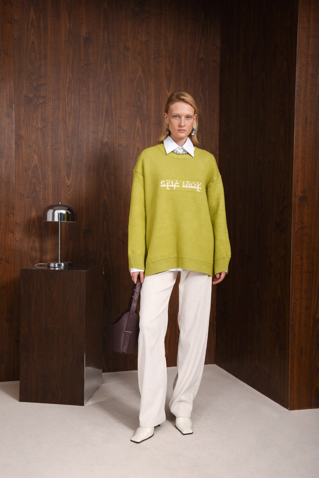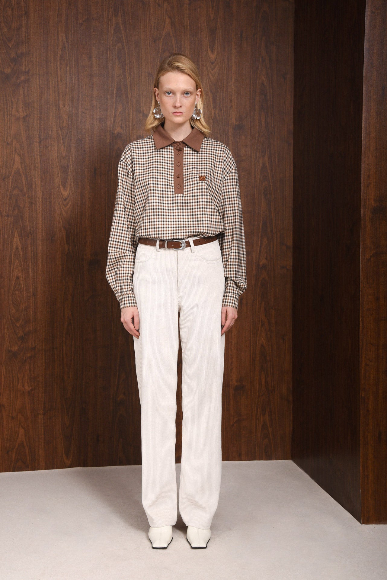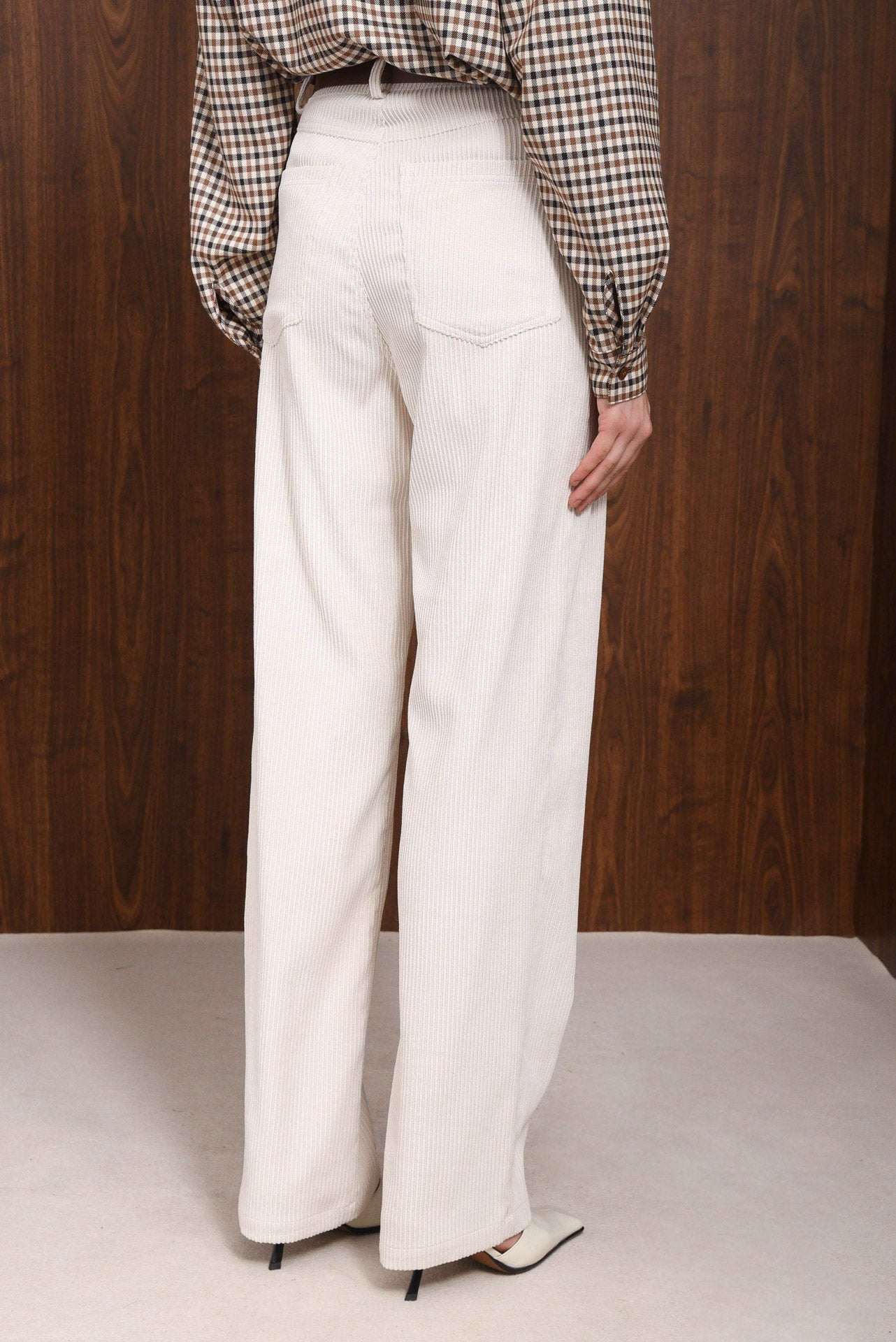 Character Pants, high-waisted pants made from soft, fine-rib corduroy fabric. Straight-leg fit with a button and zip front, belt loops, and practical side and back pockets. Lightweight yet structured, they offer a relaxed silhouette and comfortable feel.