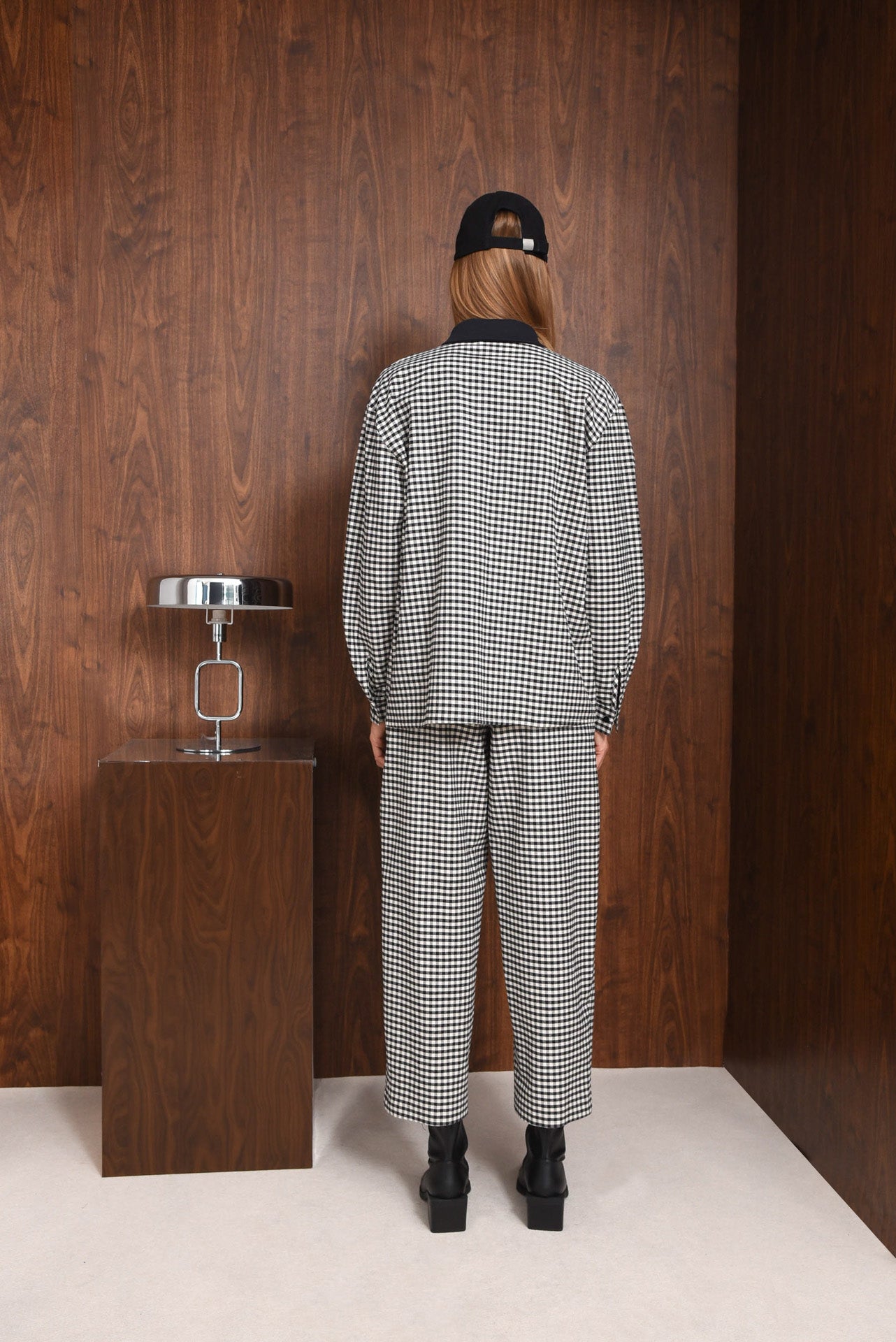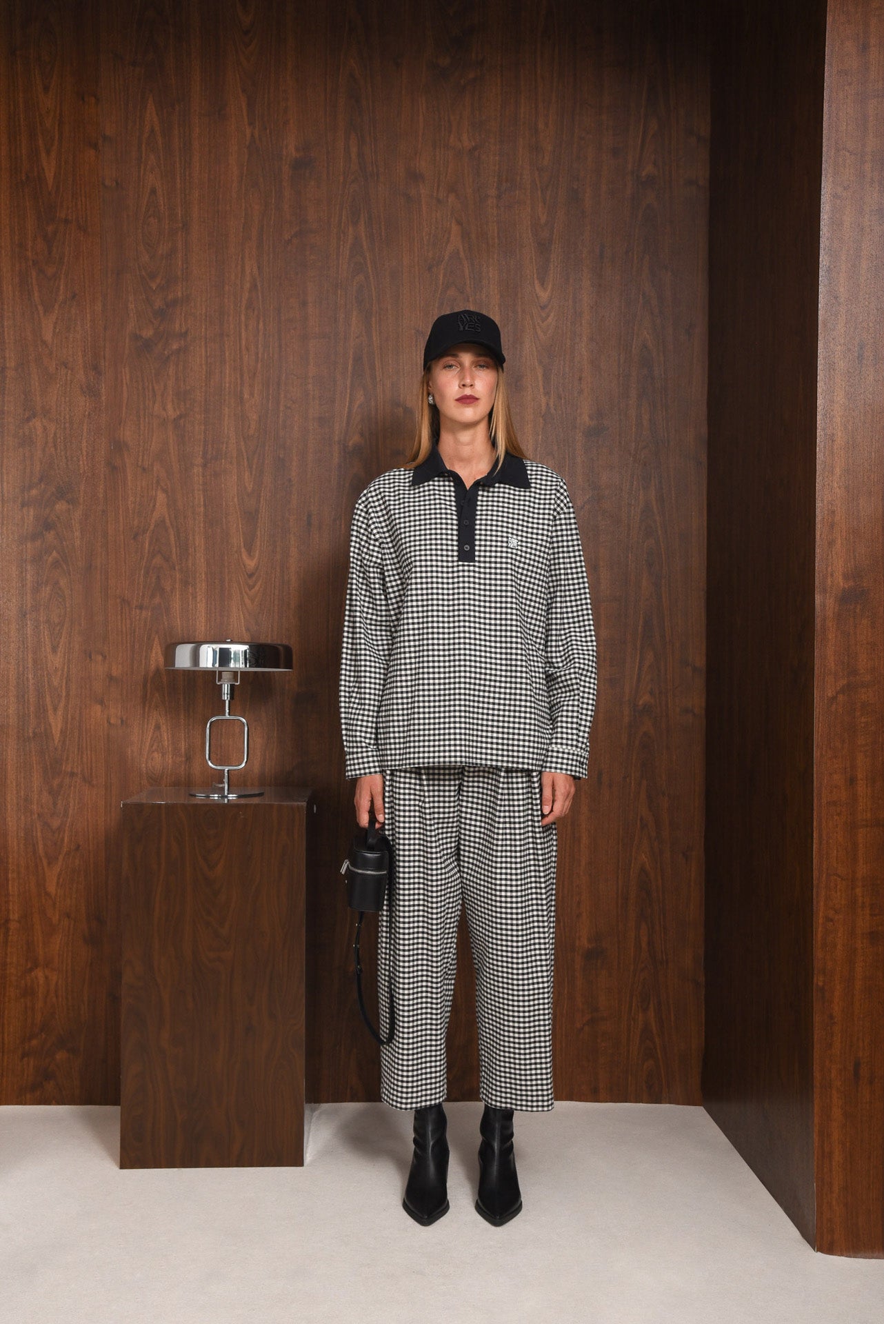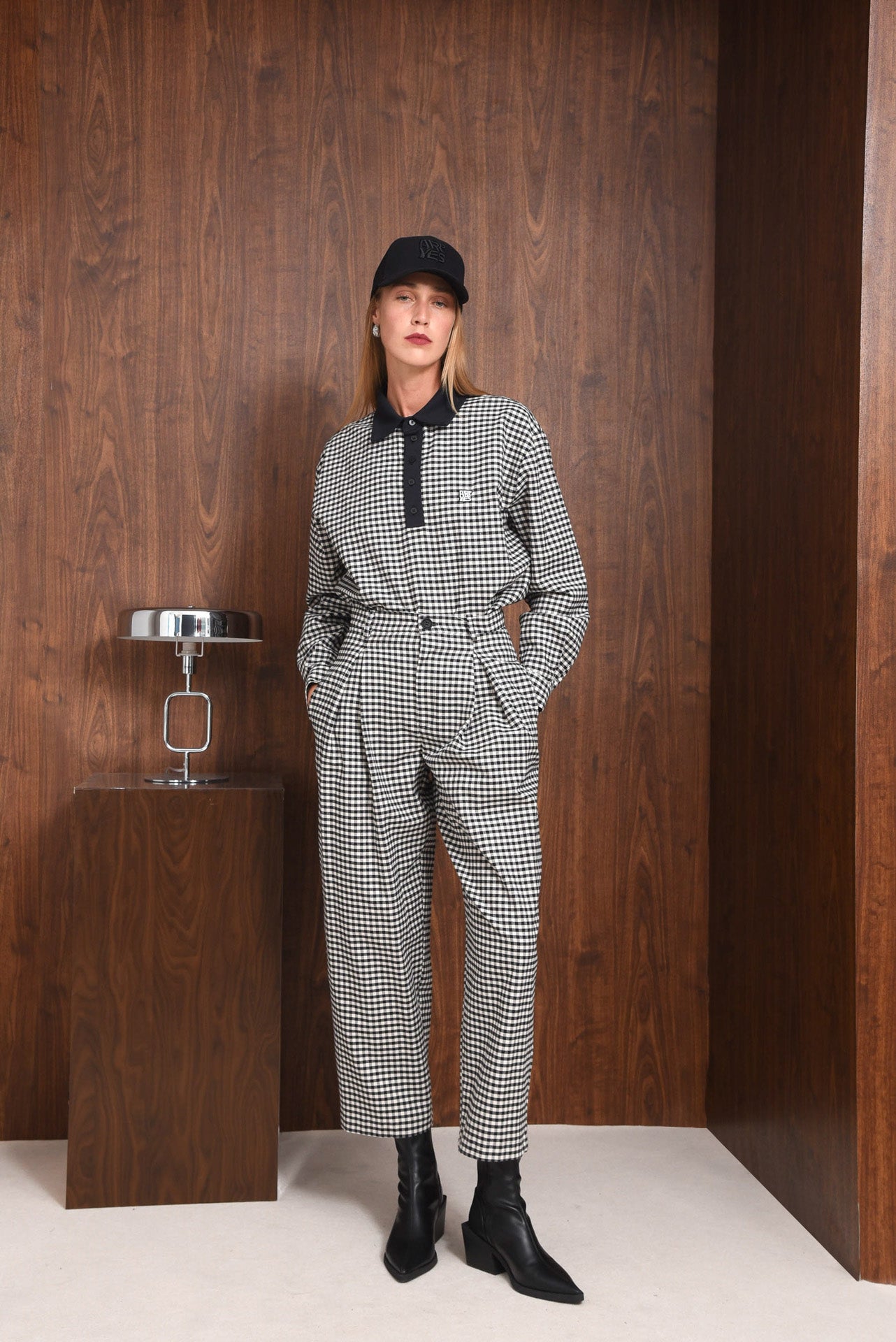 Observer Pants, high-waisted gingham pants with a relaxed, straight-leg fit. Made from soft cotton fabric for all-day comfort. Designed with front pleats, side and back pockets, and belt loops. A timeless piece that pairs easily with shirts or knits for an effortless everyday look.