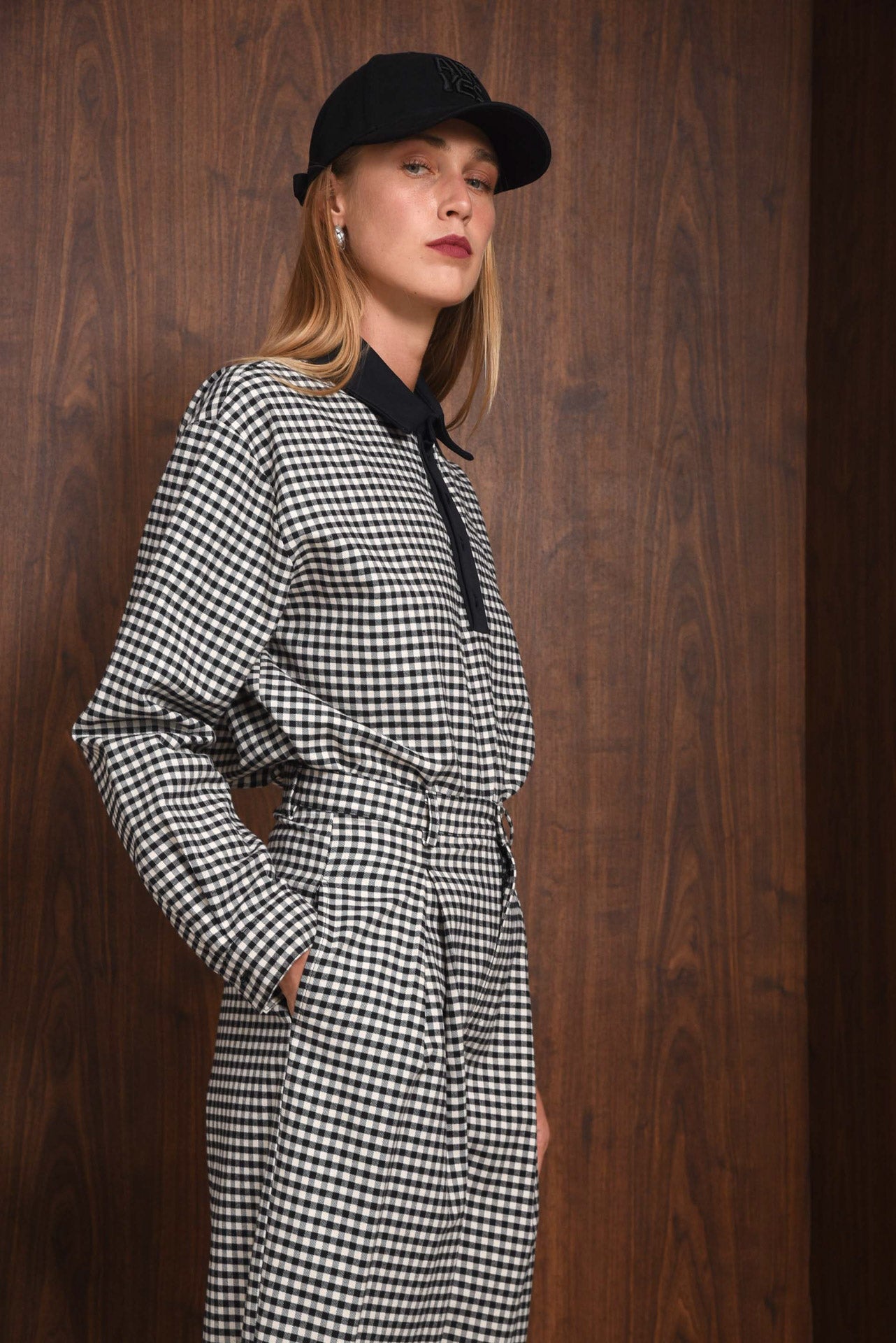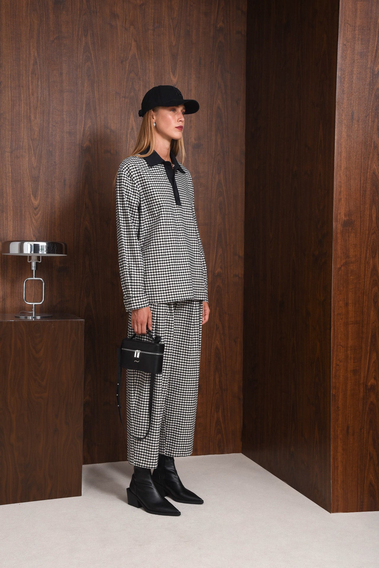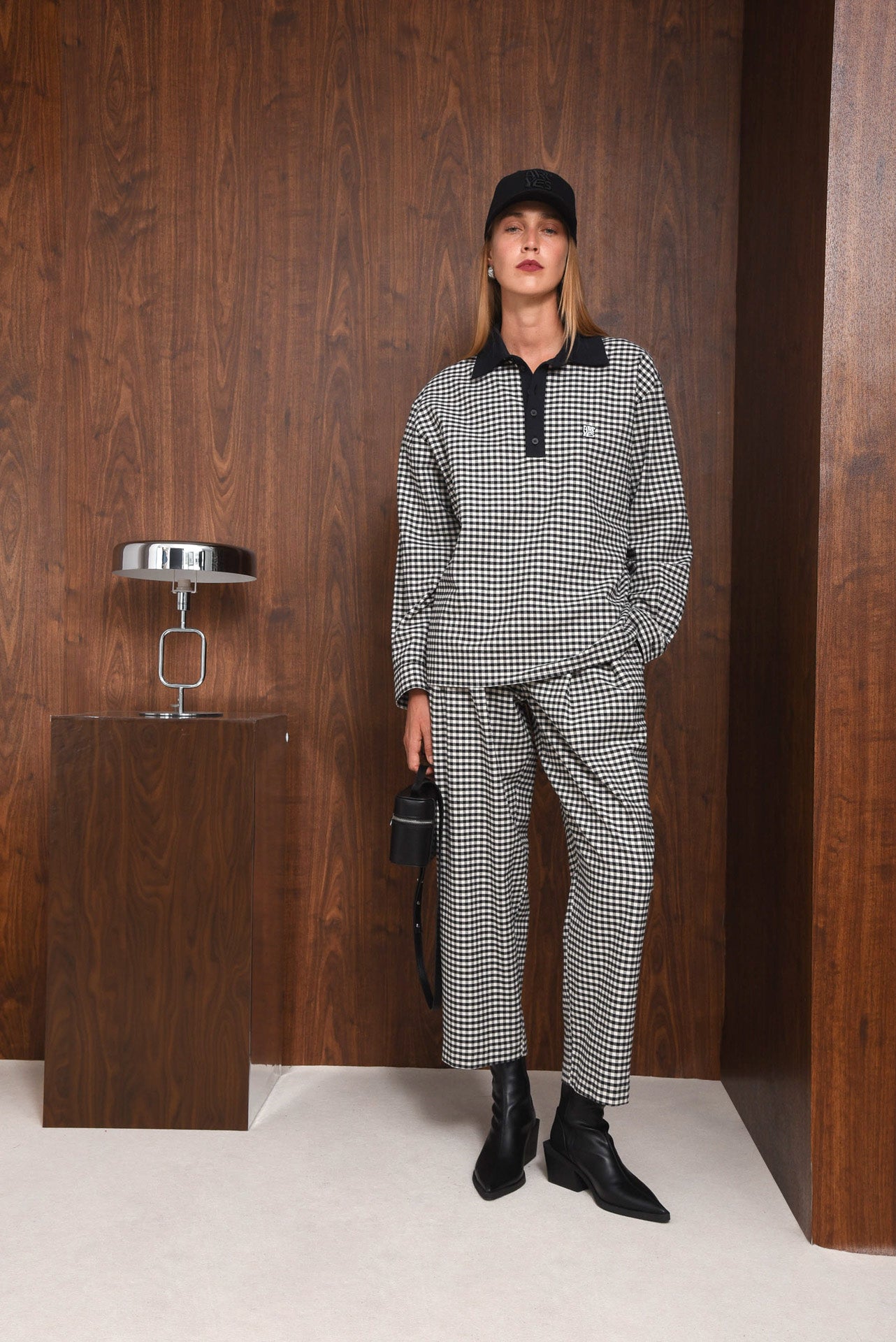 Observer Pants, high-waisted gingham pants with a relaxed, straight-leg fit. Made from soft cotton fabric for all-day comfort. Designed with front pleats, side and back pockets, and belt loops. A timeless piece that pairs easily with shirts or knits for an effortless everyday look.