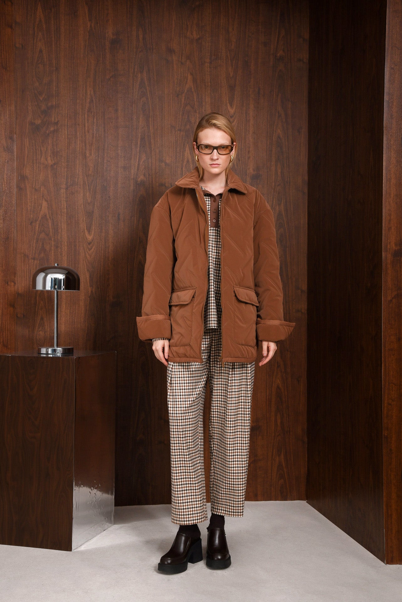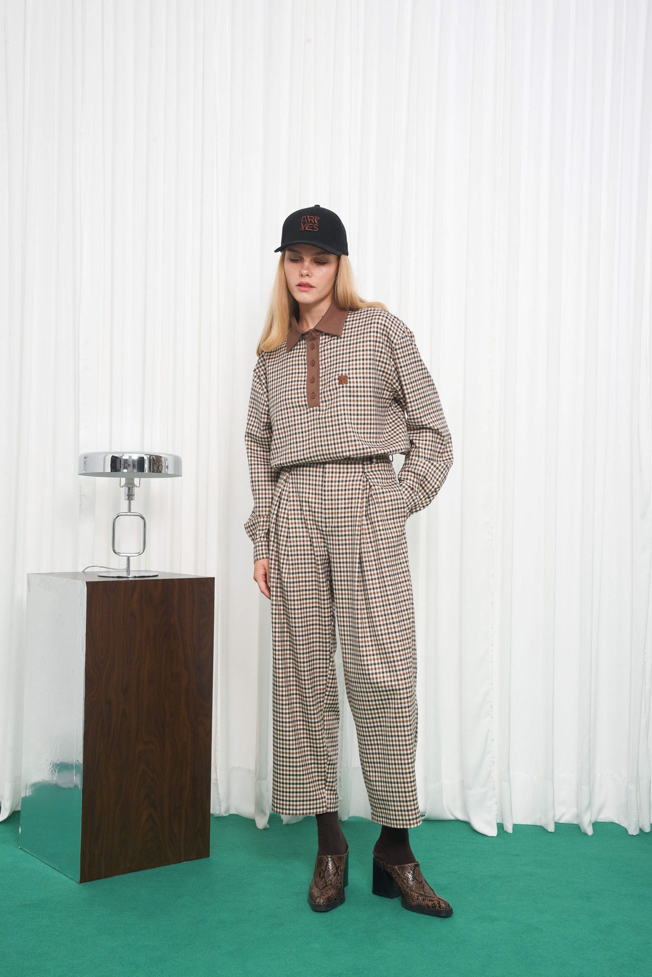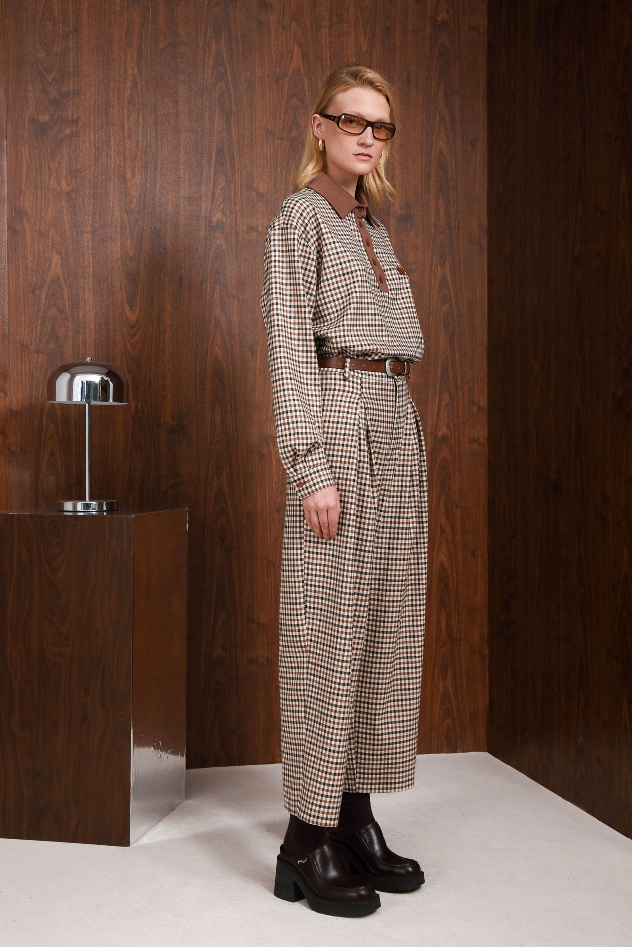 Observer Pants, high-waisted gingham pants with a relaxed, straight-leg fit. Made from soft cotton-blend fabric for all-day comfort. Designed with front pleats, side and back pockets, and belt loops. A timeless piece that pairs easily with shirts or knits for an effortless everyday look.