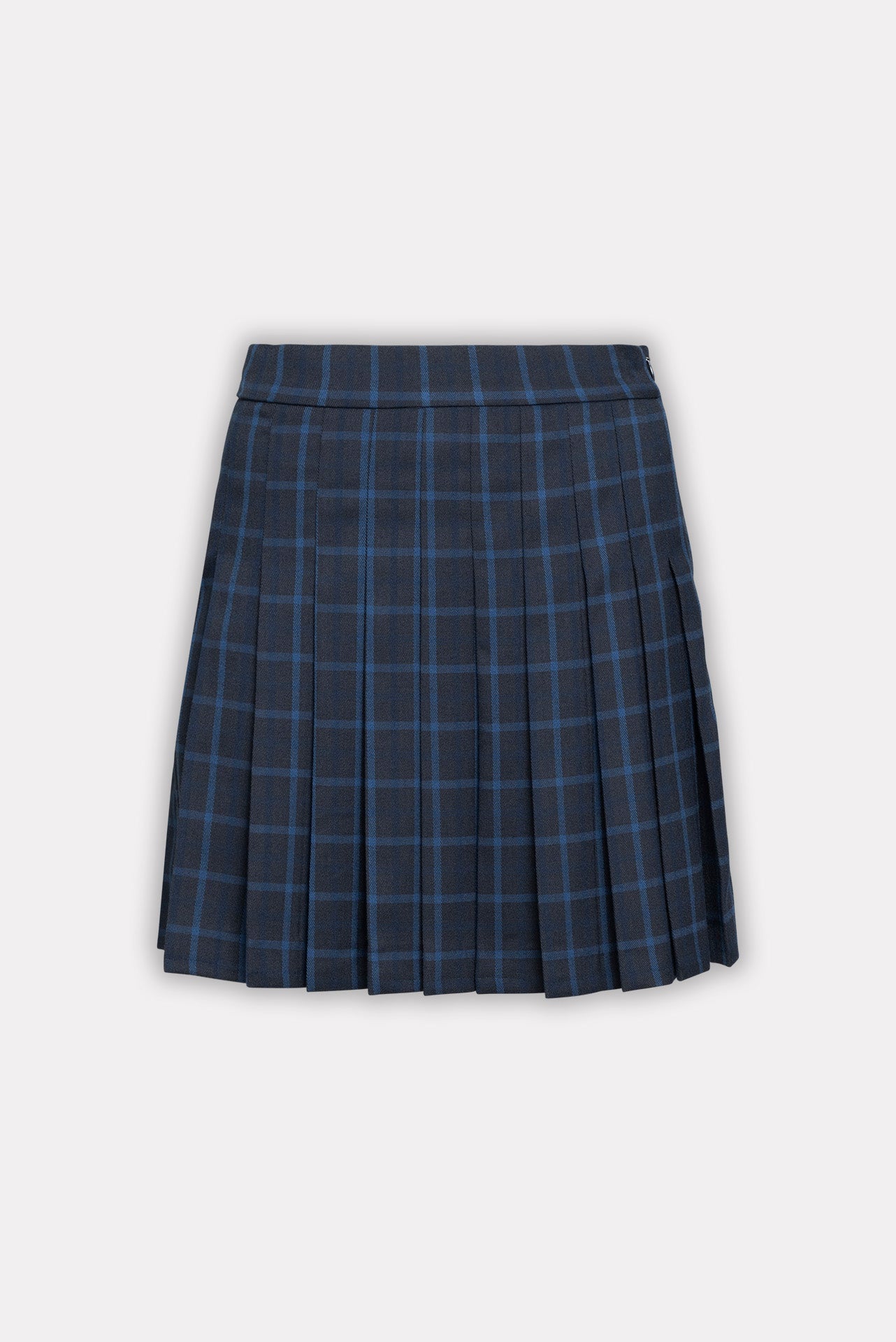 The Affect Mini Skirt features a classic pleated silhouette with a high waist and short length. Designed in a plaid pattern, it comes in deep navy tones with subtle contrasting lines. Finished with a structured waistband and side zip closure, it offers a clean, tailored look with a playful, modern feel.