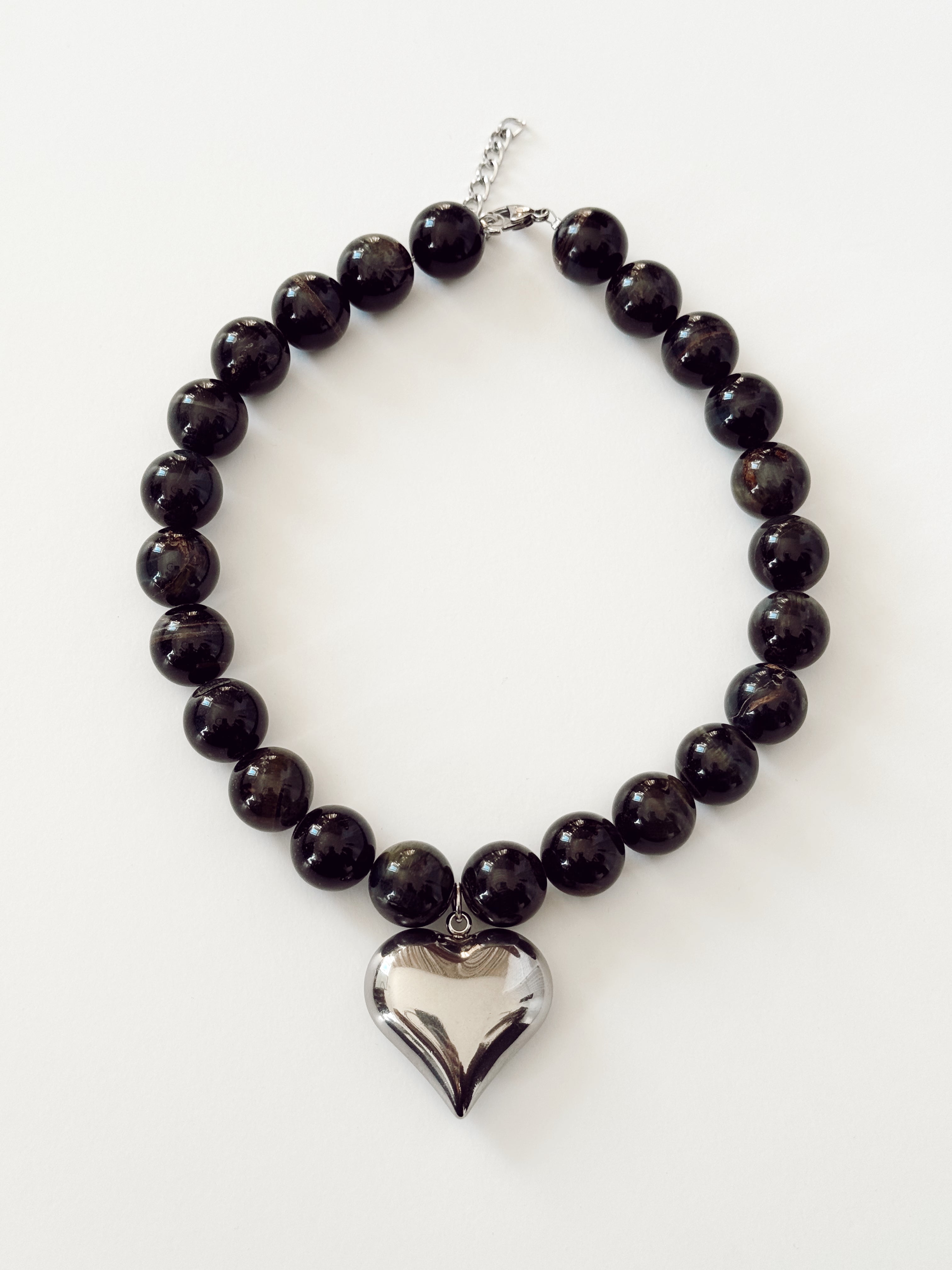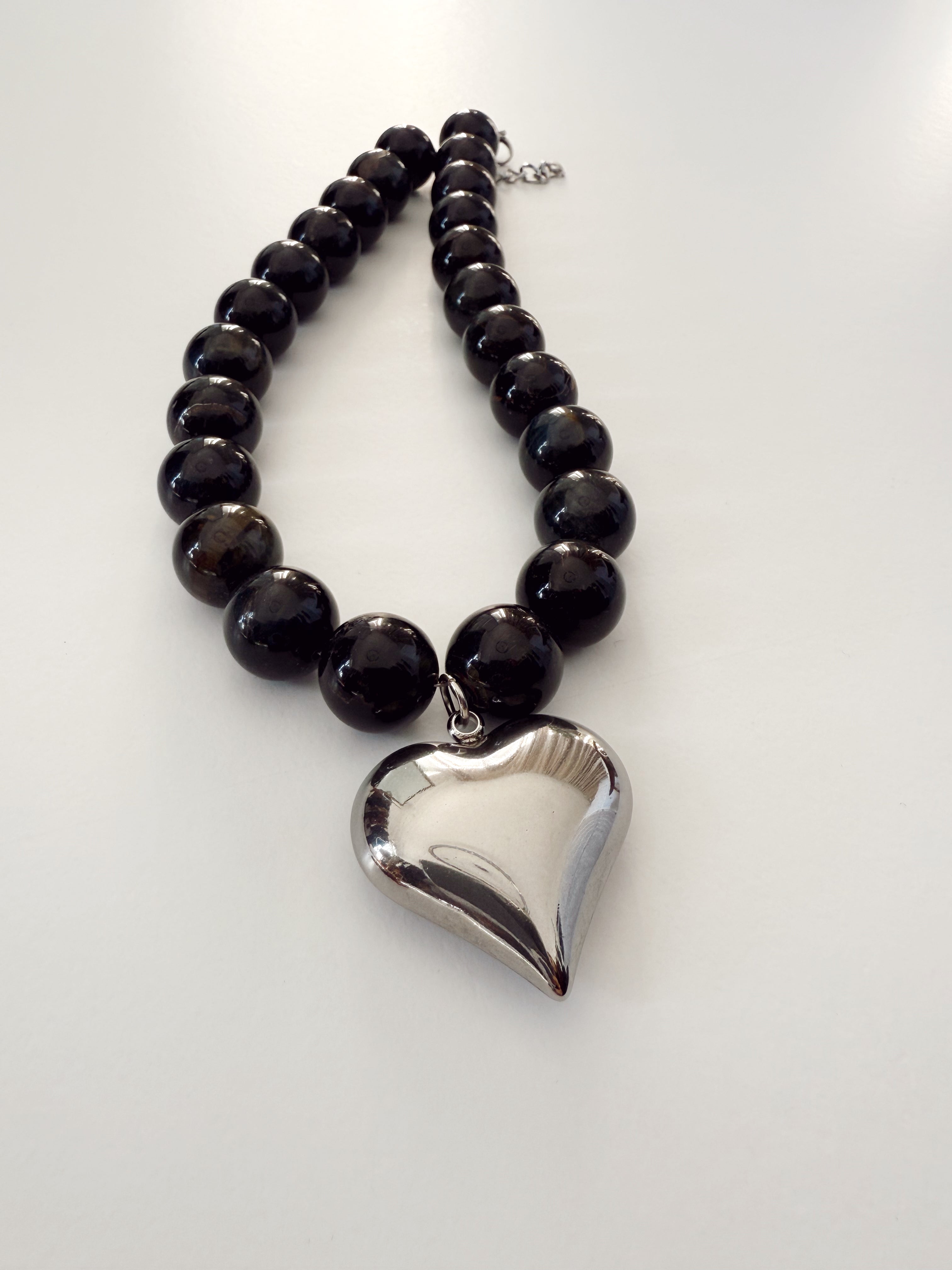 BEADED SILVER HEART NECKLACE