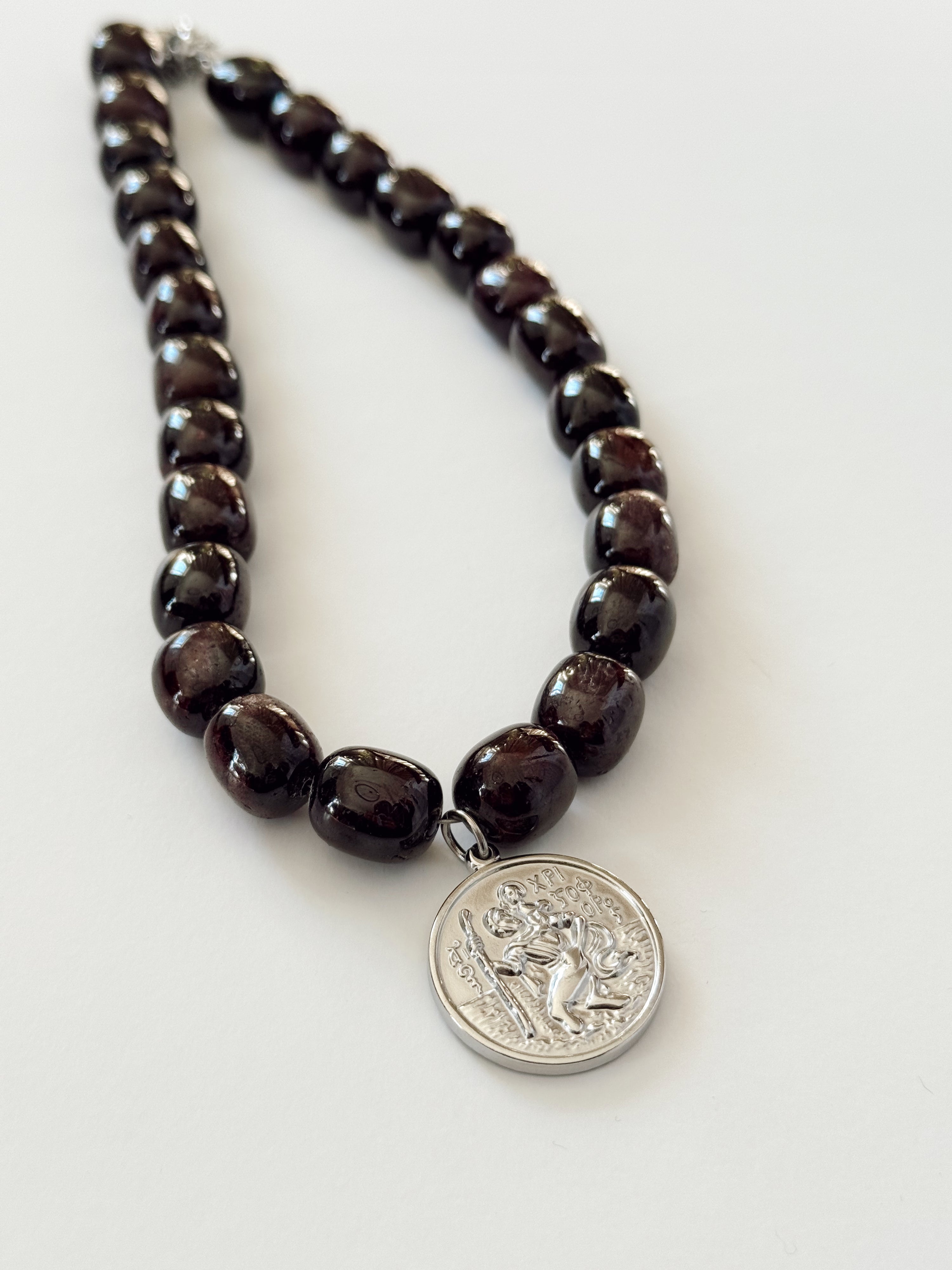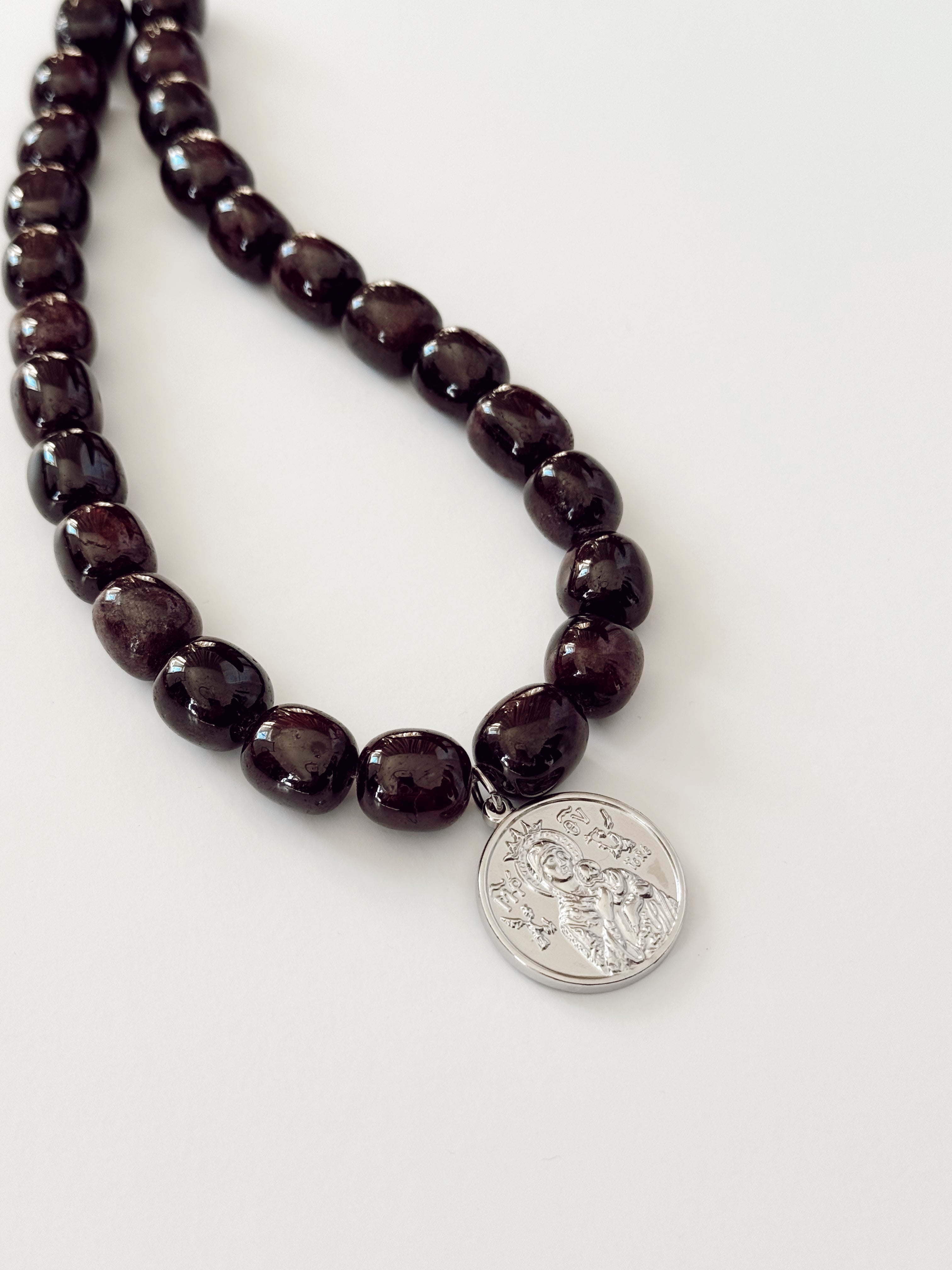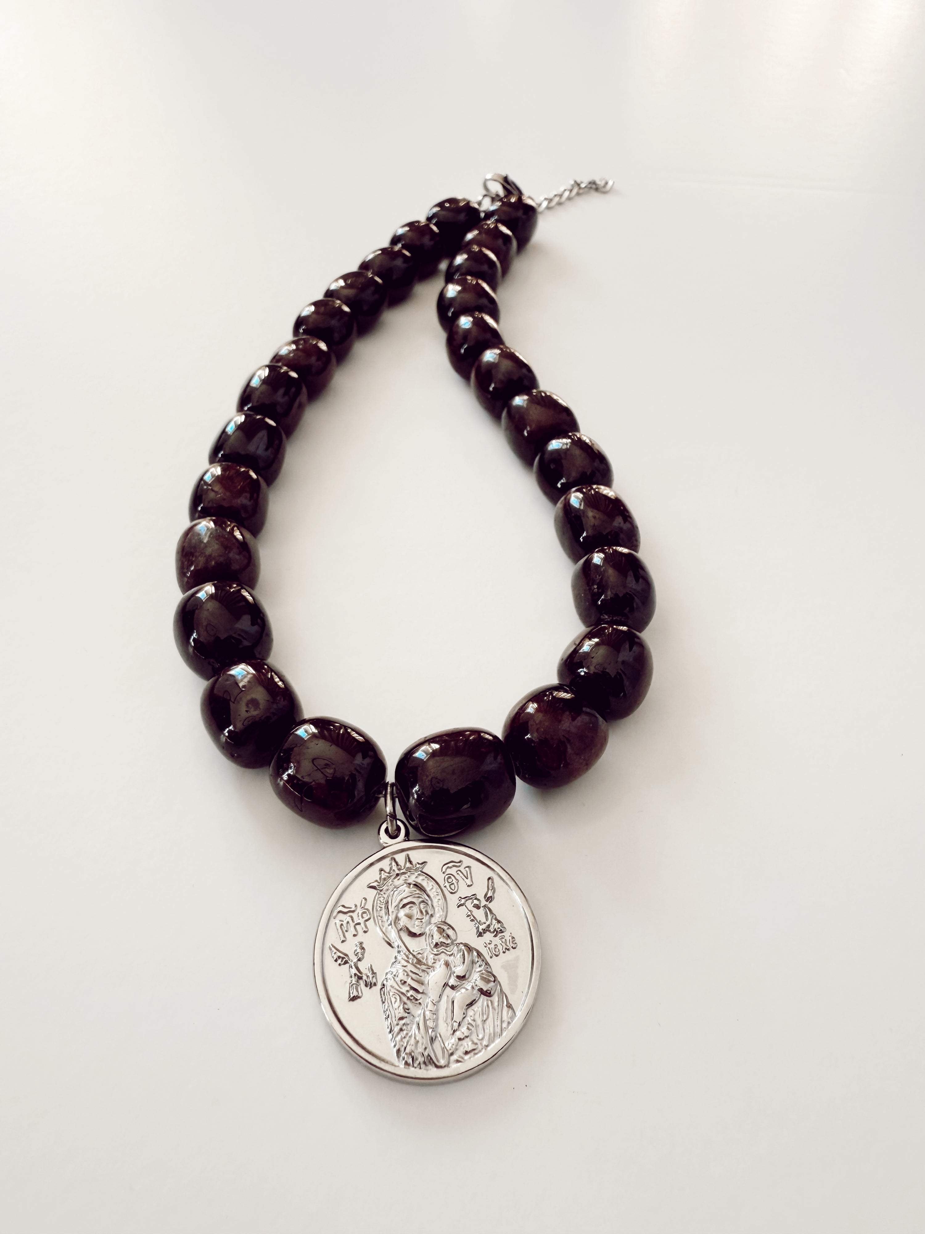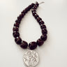 BORDEAUX BEADED SILVER MEDALLION NECKLACE