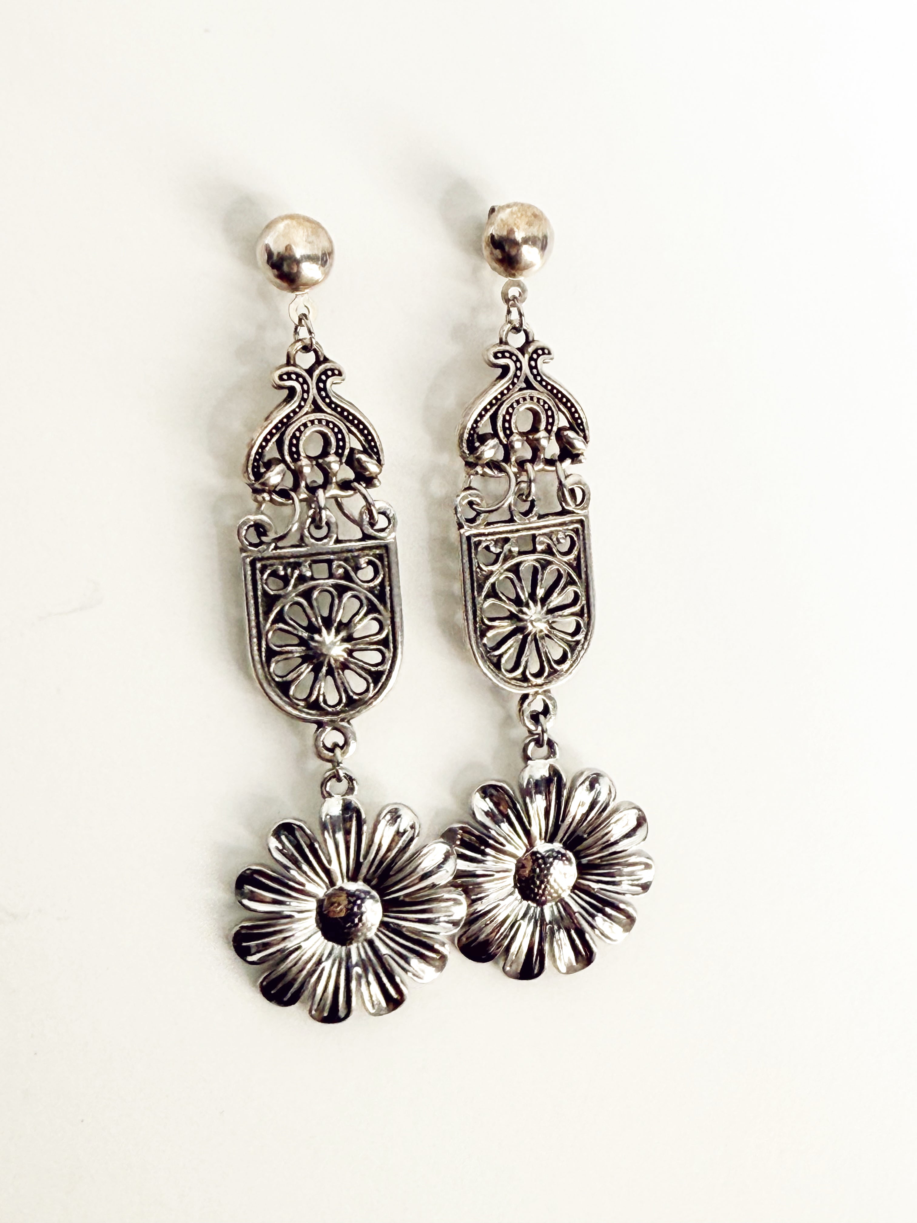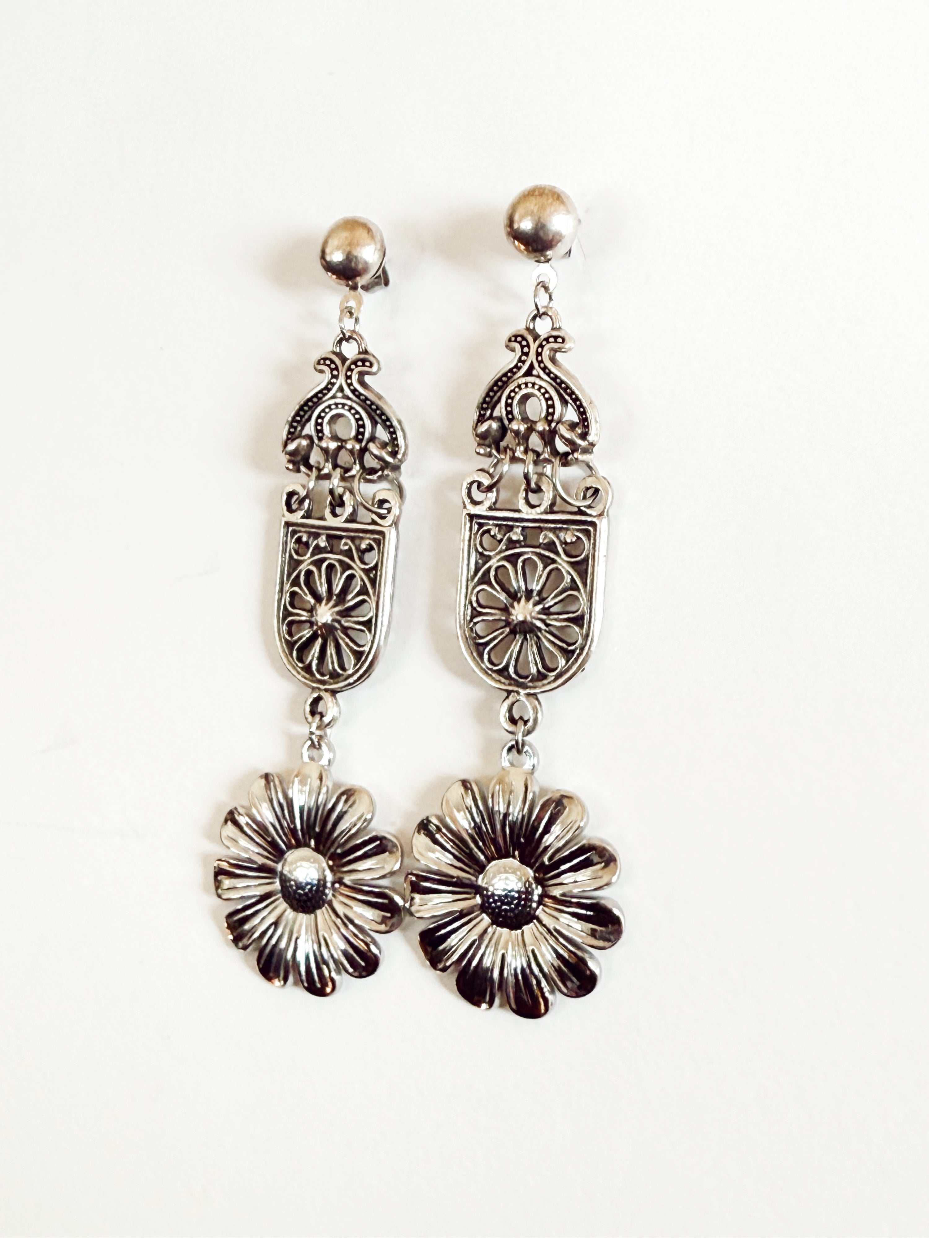 VINTAGE FLORAL DROP EARRINGS SILVER