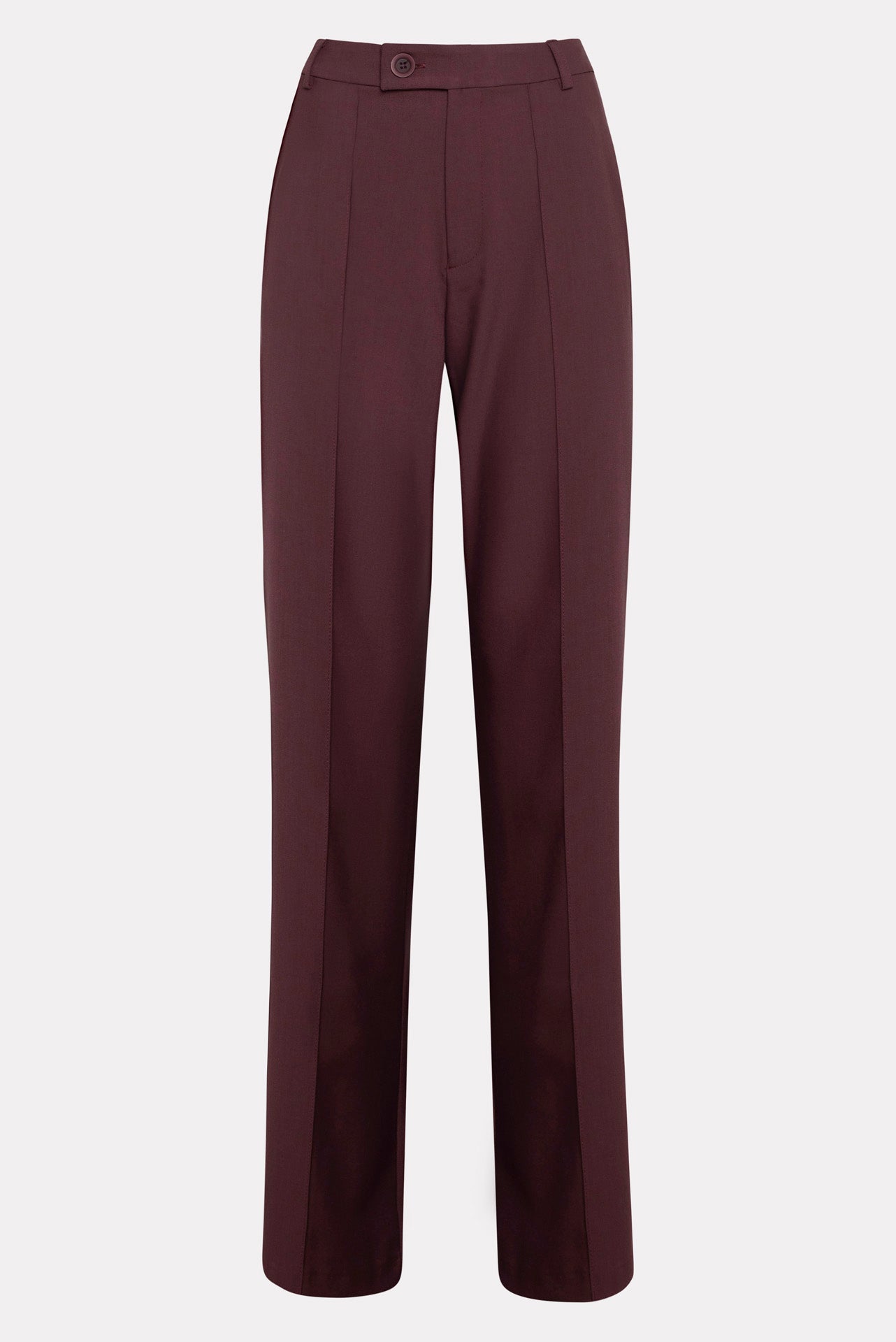 The Innocent Pants have a high waist, straight wide-leg cut, and a clean front with a sharp crease. They close with a button and zip, include belt loops, side slit pockets, and a back welt pocket. Minimal and versatile, they offer a polished silhouette for both casual and tailored looks.