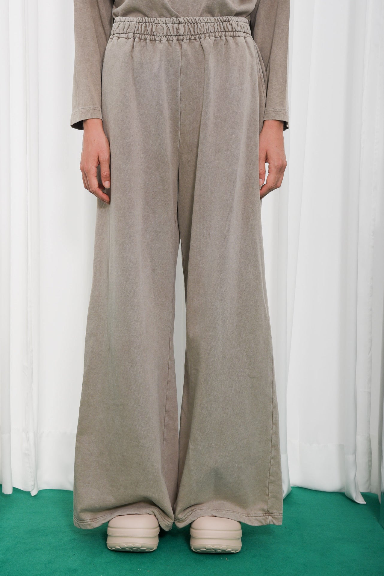 The Unique Pants are relaxed, full-length trousers made from soft cotton. They feature an elastic waistband for a comfortable fit, wide legs for an effortless drape, and side pockets for practicality. Finished with a vintage-style garment wash that adds texture and depth to the color. Perfect for elevated comfort every day.