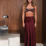 The Vanity maxi skirt is made from soft viscose with a silky finish. It has a high waist, smooth waistband, and a long, flowing cut that reaches the floor. Designed with clean lines and subtle seams, it drapes elegantly and moves with ease.