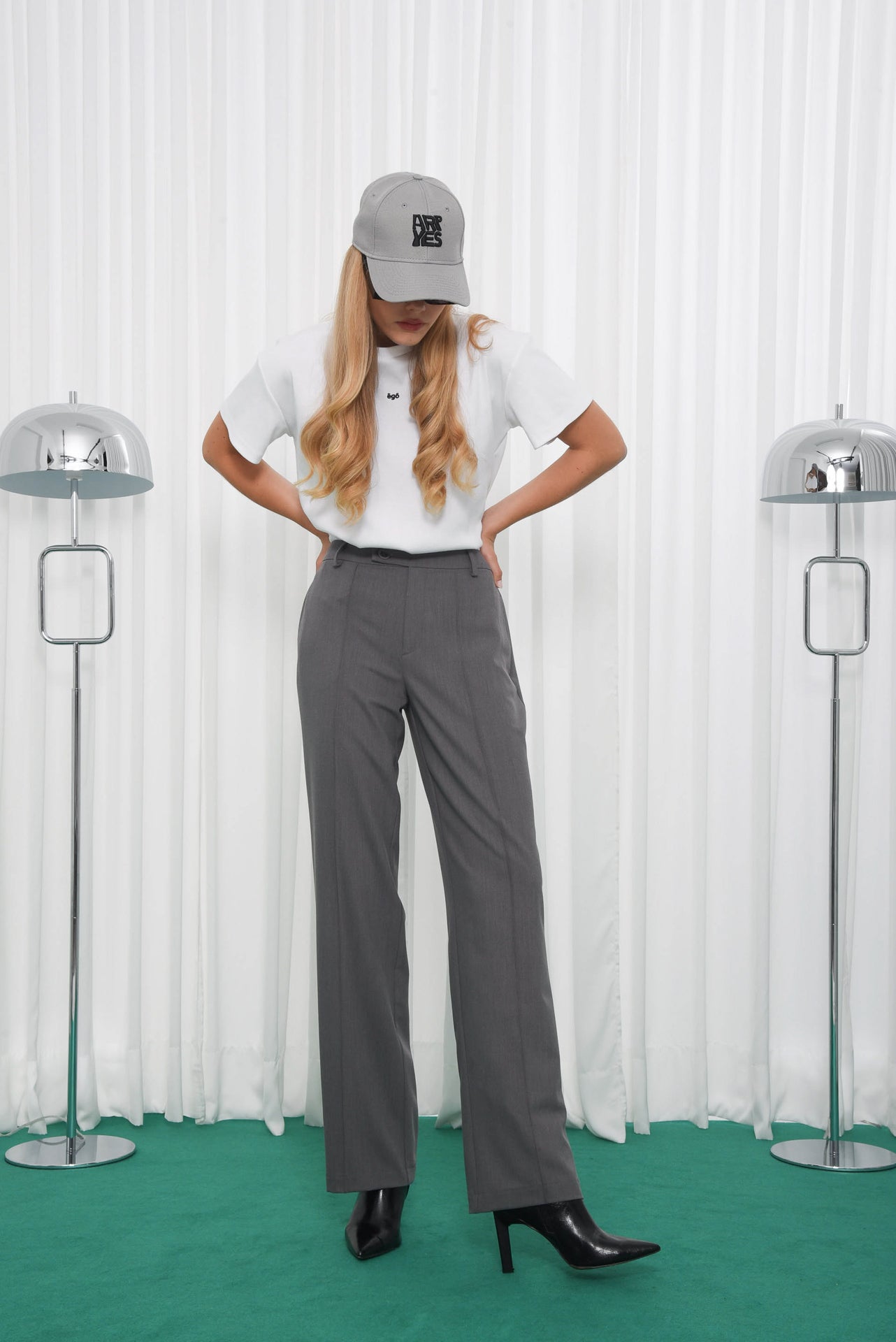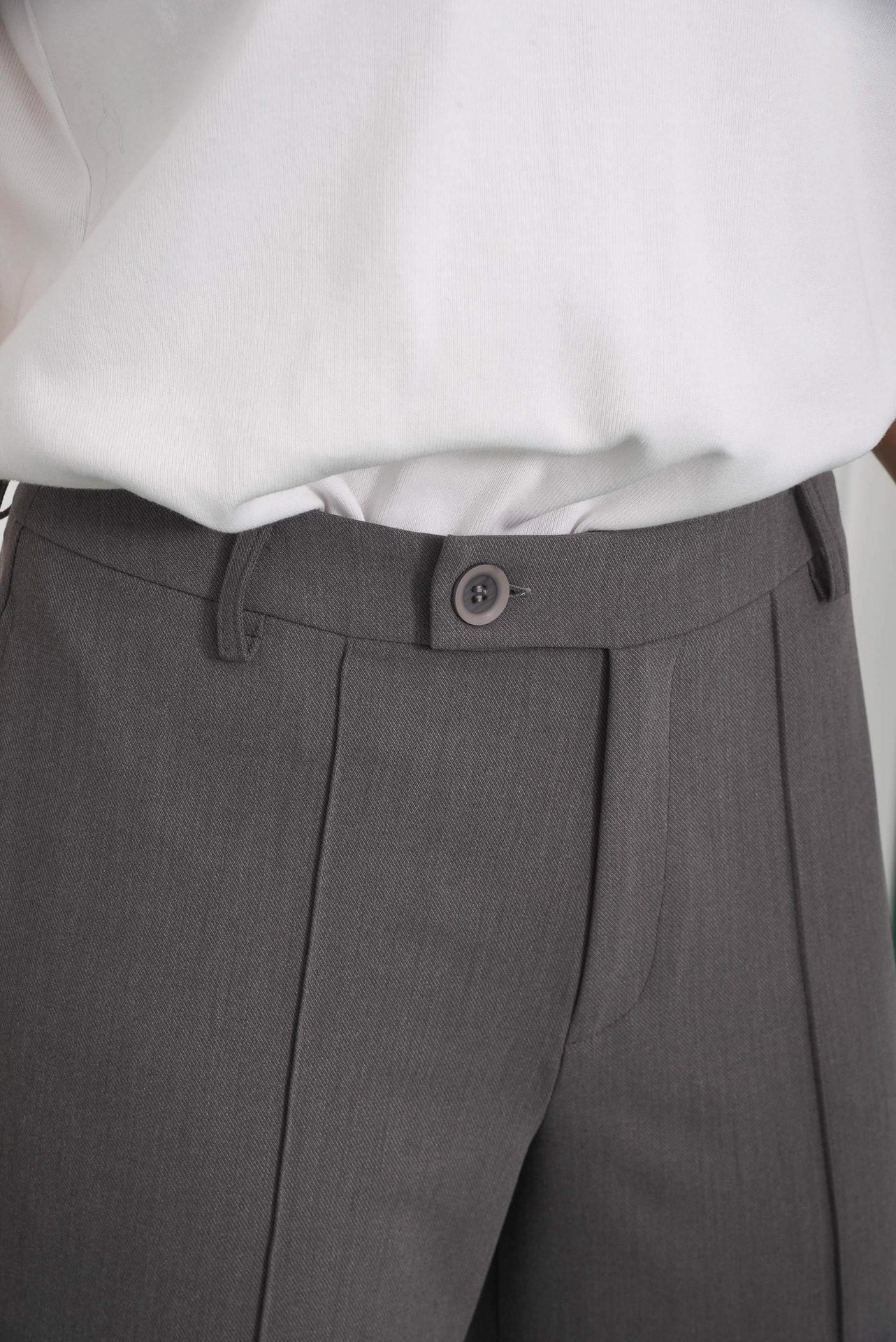 The Innocent Pants have a high waist, straight wide-leg cut, and a clean front with a sharp crease. They close with a button and zip, include belt loops, side slit pockets, and a back welt pocket. Minimal and versatile, they offer a polished silhouette for both casual and tailored looks.