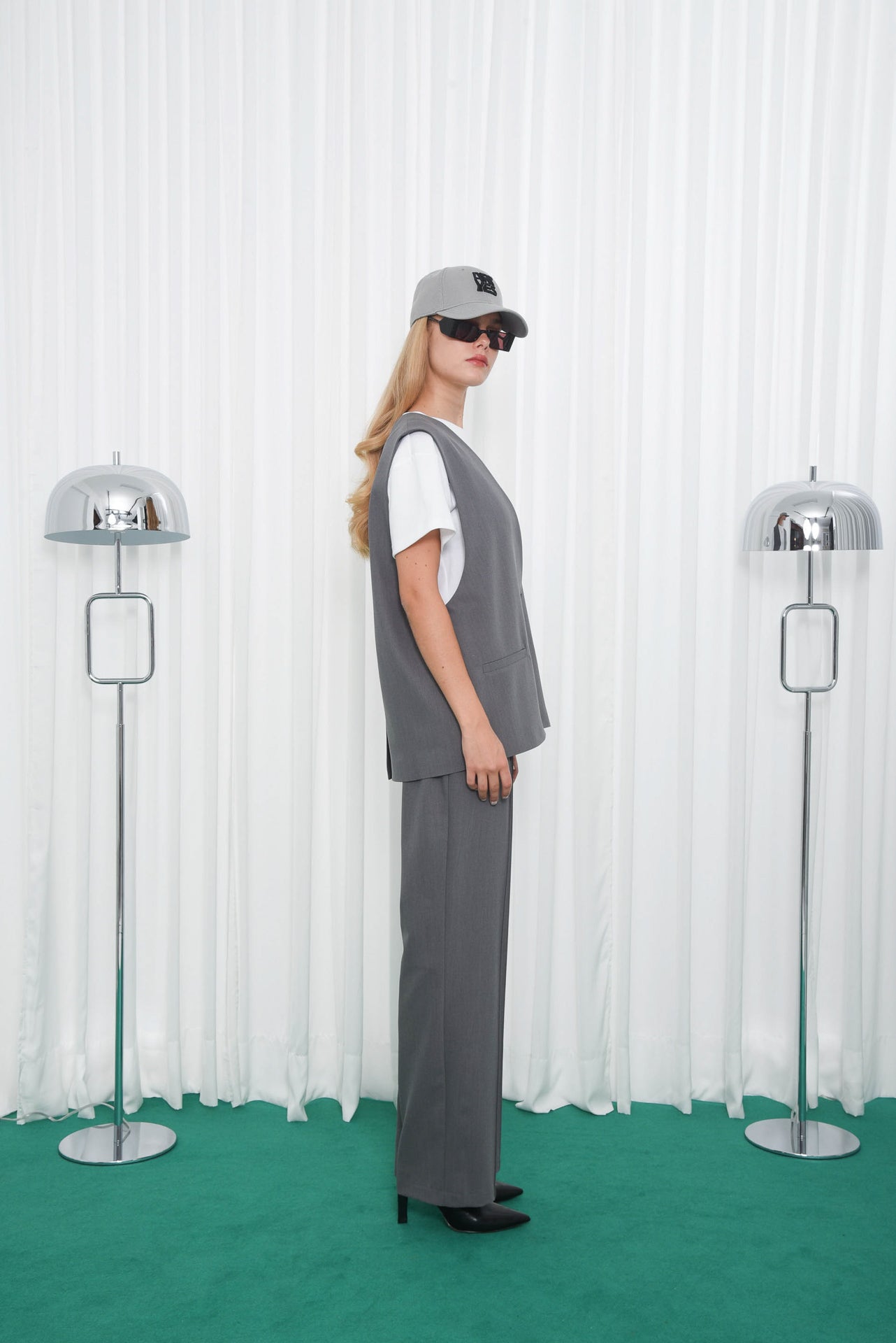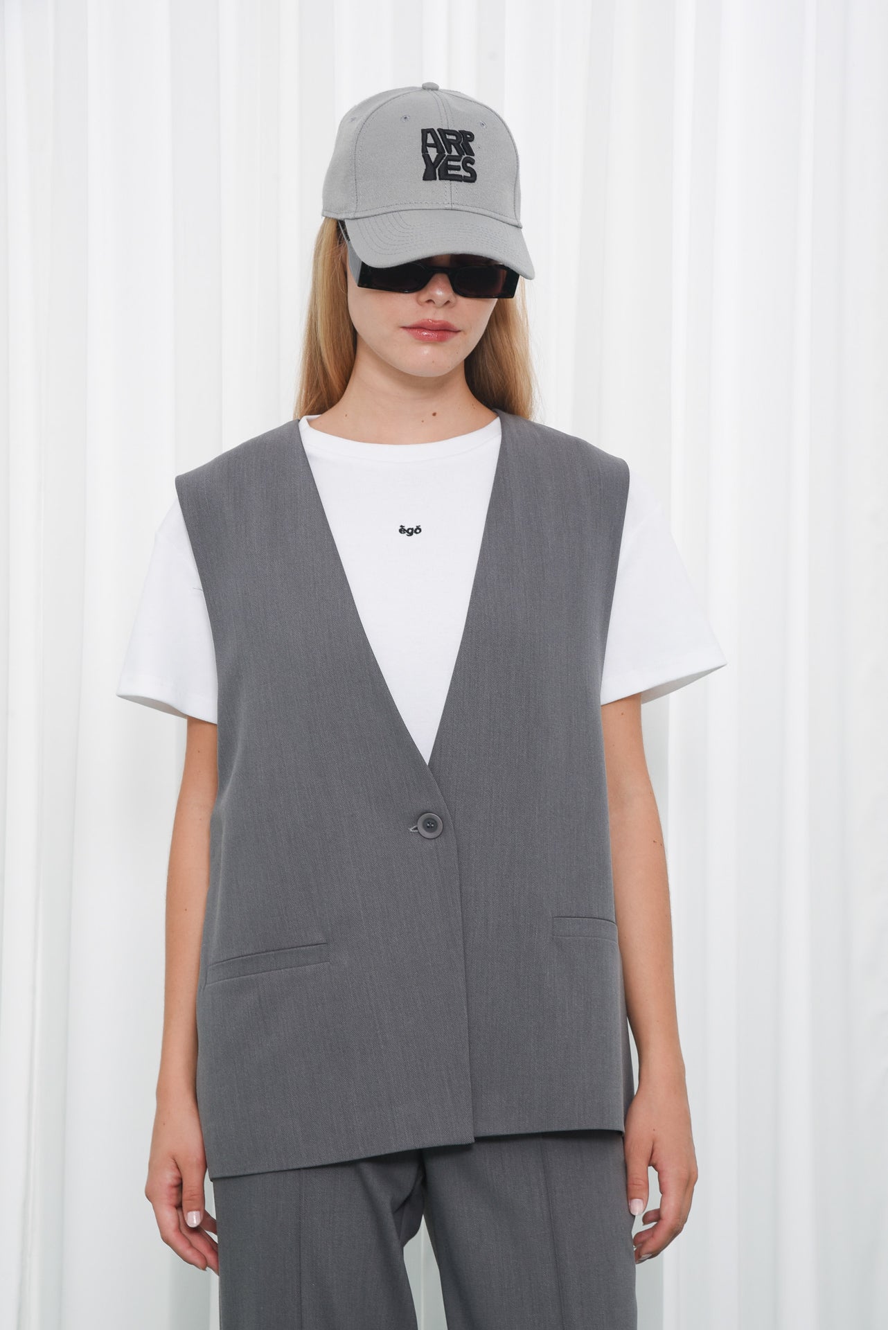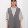 The Innocent Vest features a relaxed straight cut with a deep V-neckline and a single-button closure. Designed with welt pockets and a clean back seam, it offers a minimal, tailored look. Fully lined for comfort, it is easy to wear and pairs well with any outfit.