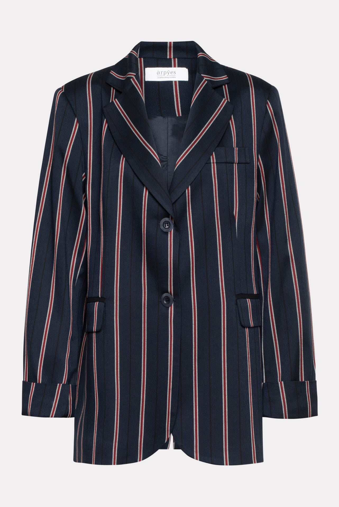 The Obscura blazer has a relaxed fit with bold vertical stripes, a notch lapel, a two-button closure and structured shoulders. It comes with flap pockets, a chest pocket, and a clean back seam. Fully lined and easy to wear, it brings a modern touch to classic tailoring.