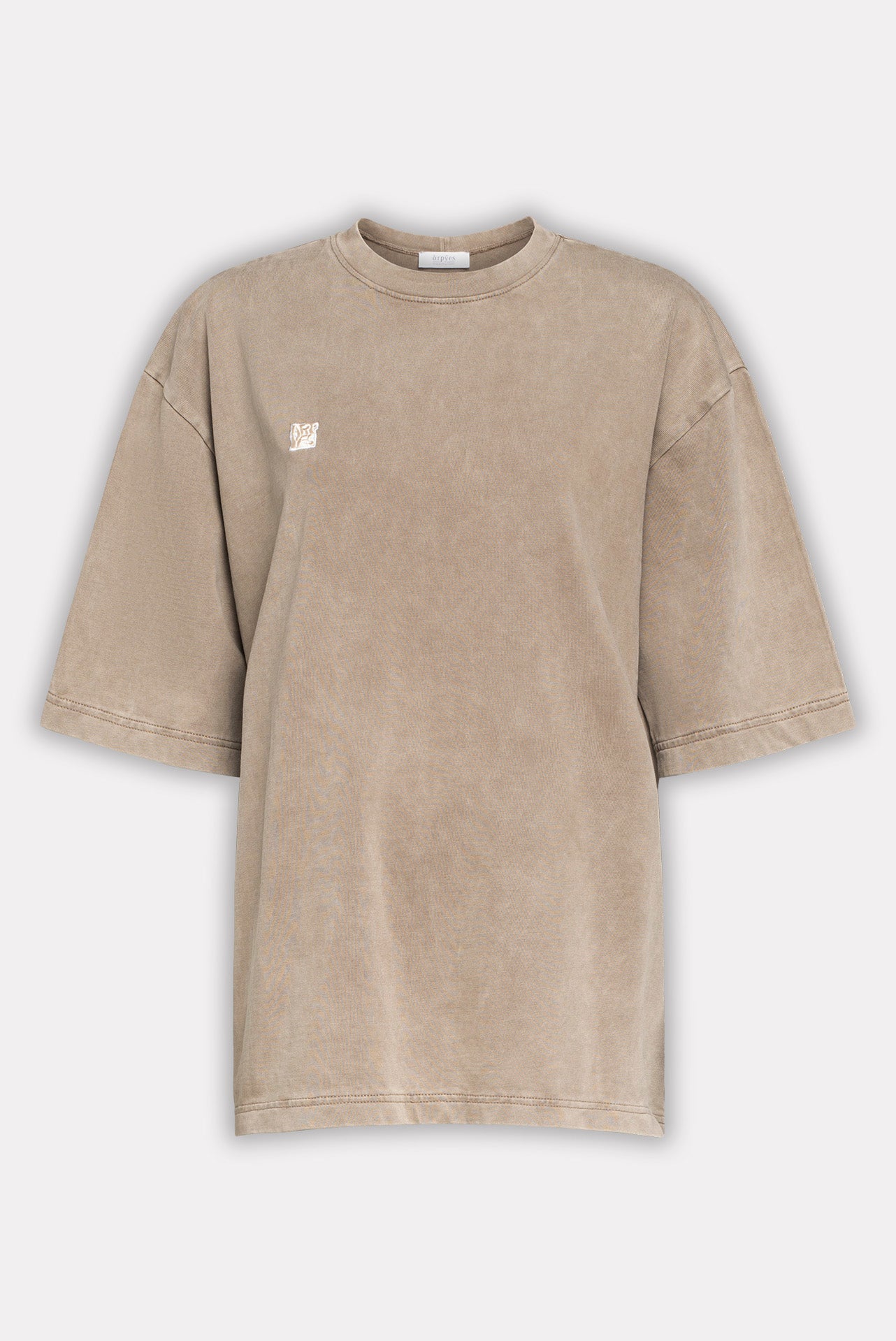 The Unique t-shirt is crafted from soft, heavyweight cotton with a washed effect for a vintage look. It features an oversized fit with dropped shoulders, wide sleeves, and a straight hem. The front is detailed with a small embroidered "ARPYES" on the left chest.