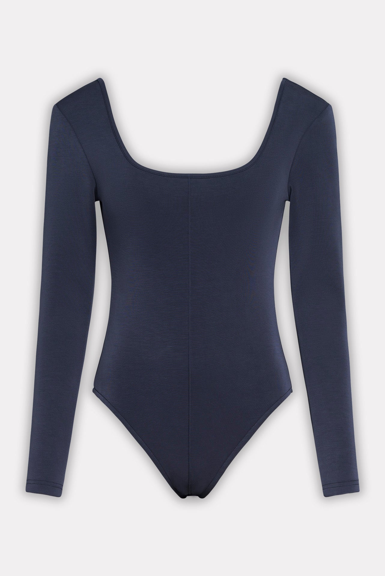 The Become body is a sleek, long-sleeve design with a deep scoop neckline and low back. Made from soft, stretchy fabric, it shapes the body while staying comfortable all day. Its clean lines and minimal fit make it the perfect base layer.