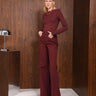 The Respect top is a fitted long-sleeve blouse made from soft ribbed fabric for comfort and stretch. It features a boat neckline and a unique diagonal seam detail across the front, adding a modern twist to a timeless design.