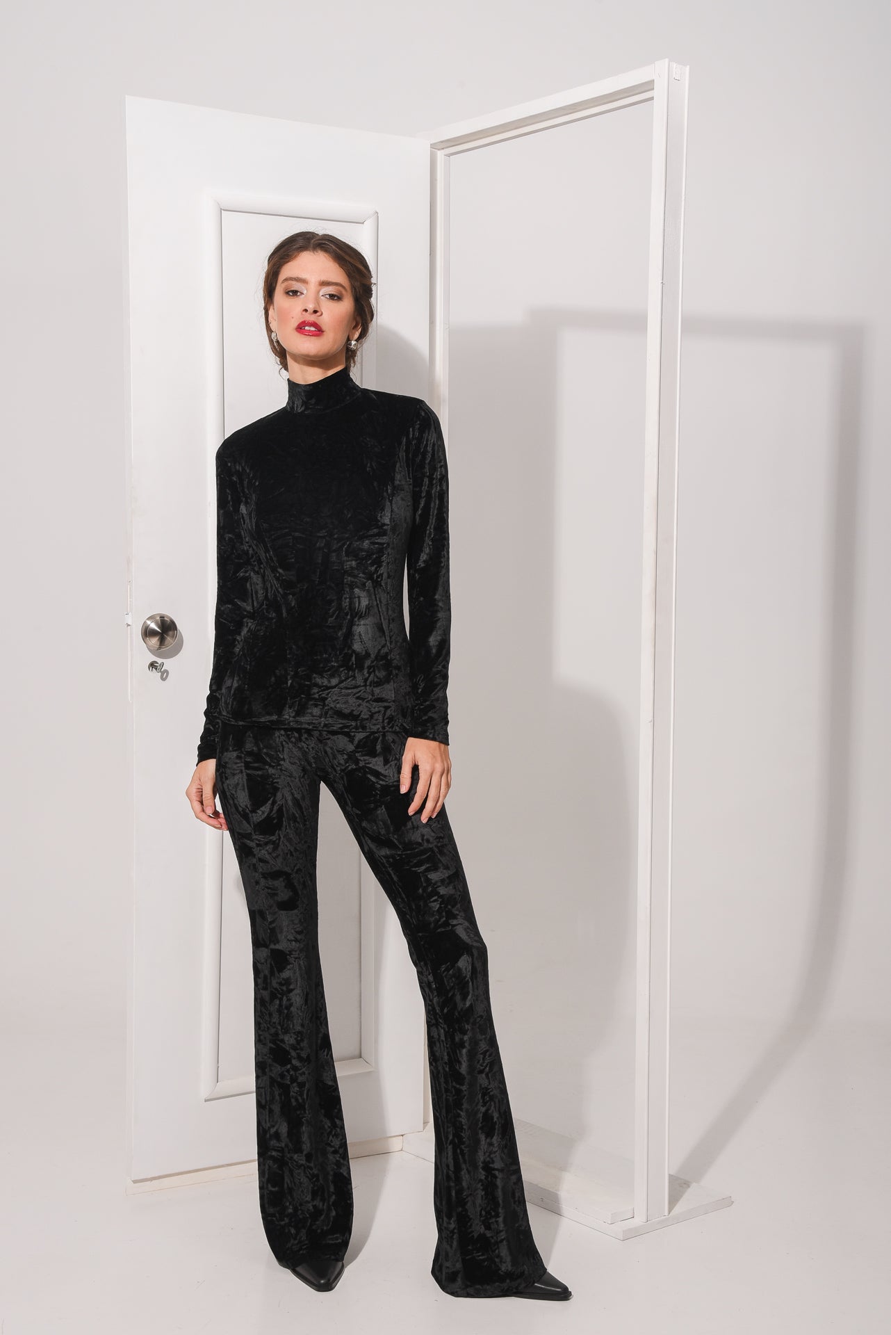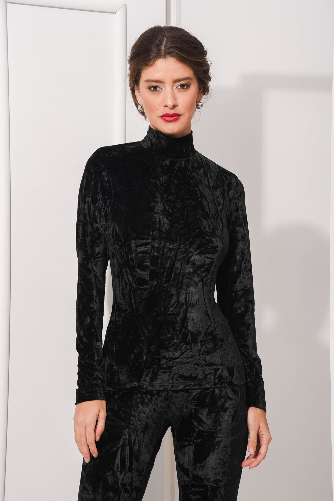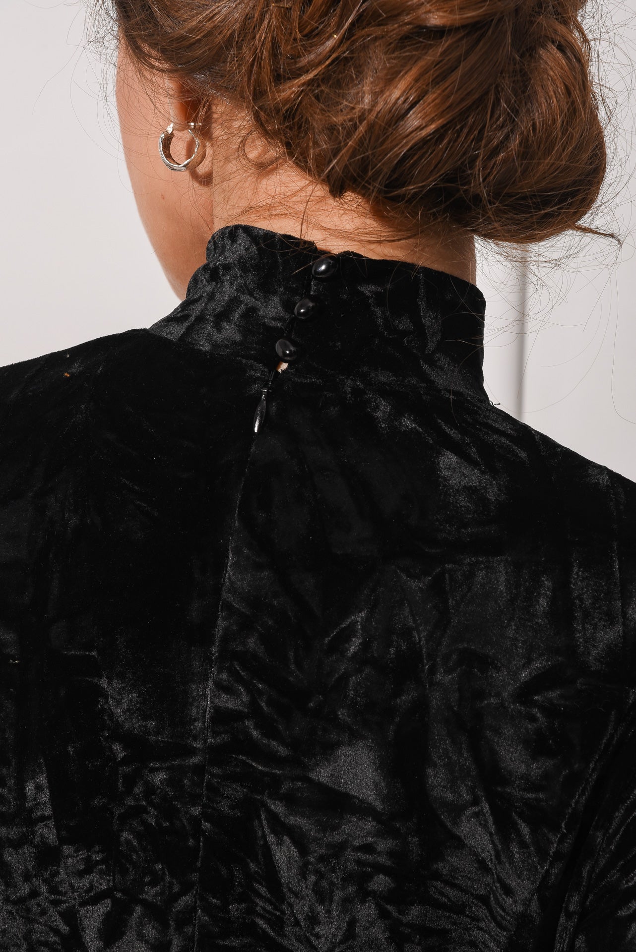 The Final Top features a sleek, fitted silhouette crafted from soft, luxurious velvet. With a high neckline and back button closure, this top offers a refined and elegant look. Its rich texture and versatile style make it perfect for elevating both casual and formal outfits.