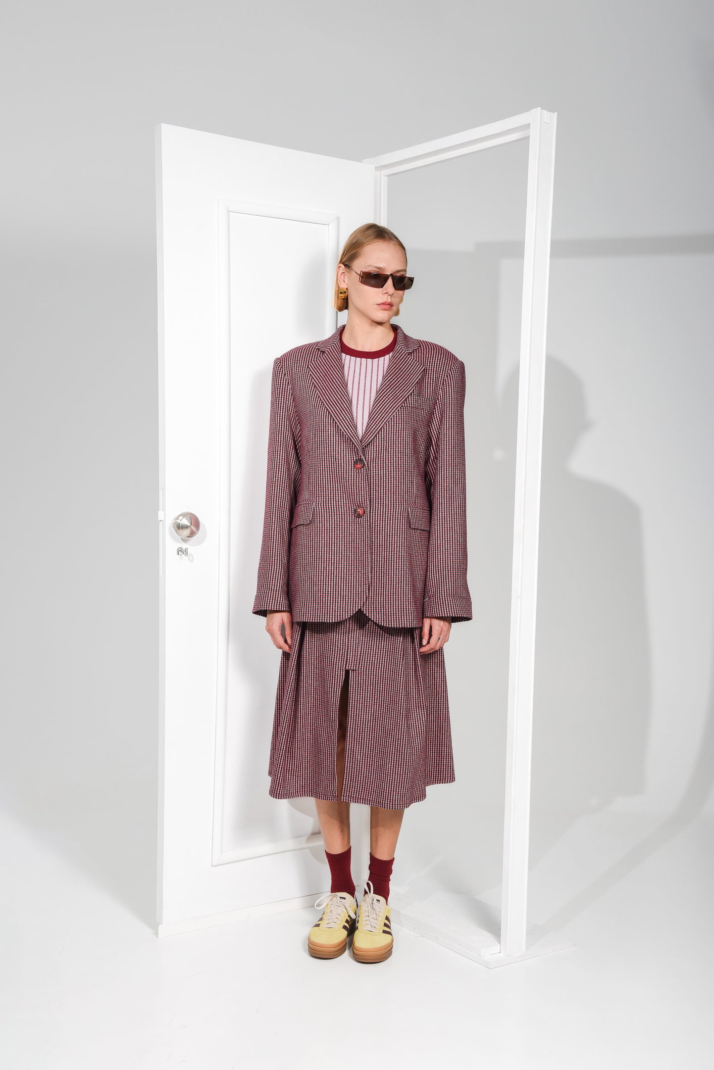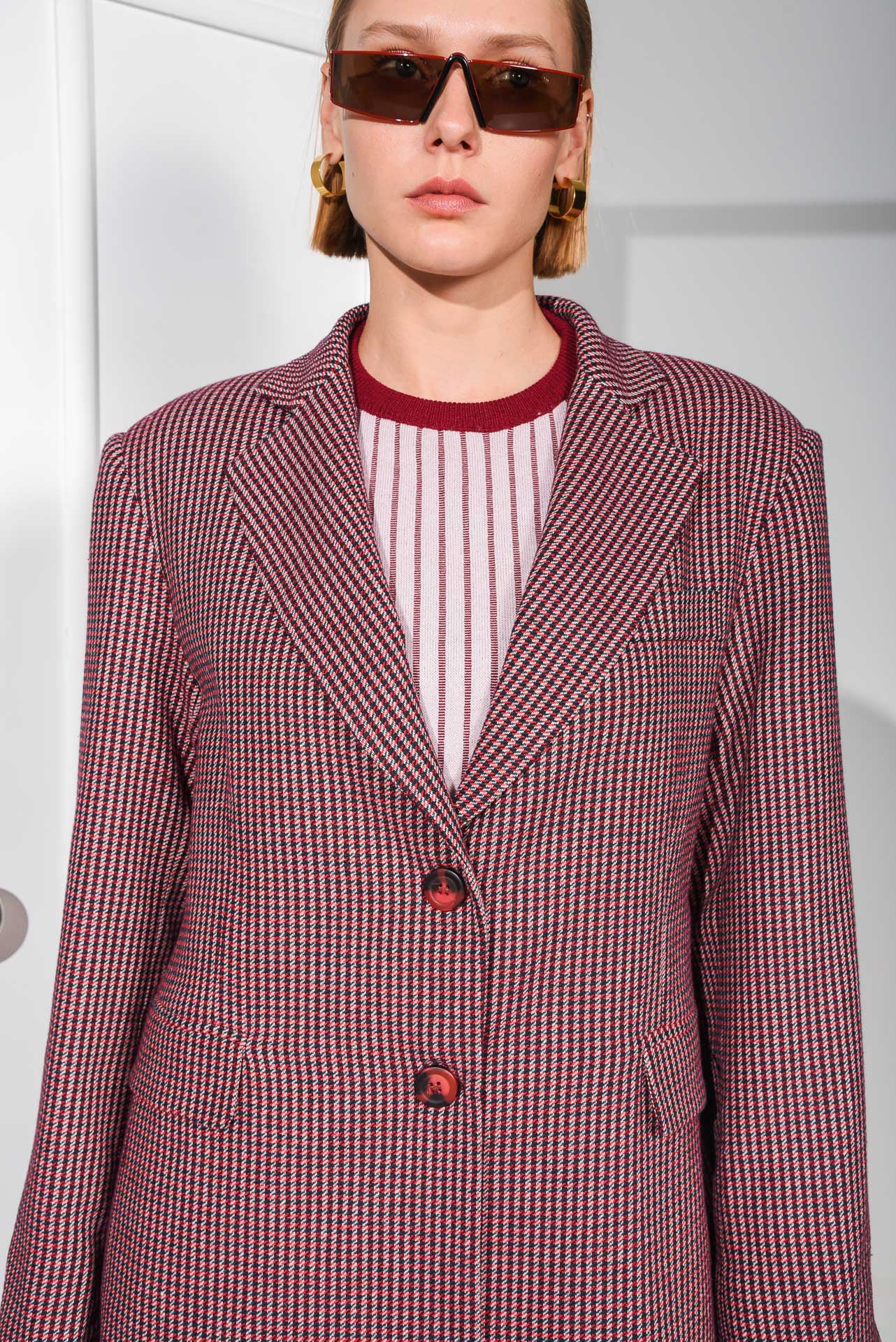 Elevate your style with the 'Horizon' Blazer. This oversized, houndstooth-patterned blazer features structured shoulders, a classic notch lapel, and dual-button closure. Its relaxed fit and timeless design make it perfect for layering over any outfit.