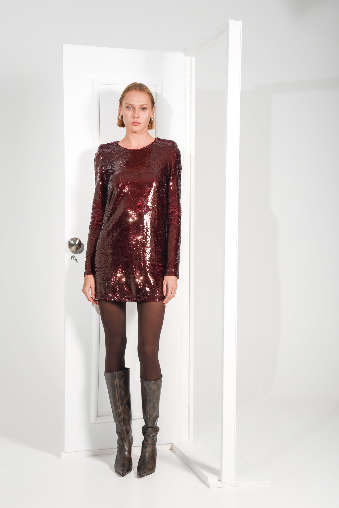 OPULENCE DRESS LONG SLEEVES BORDEAUX