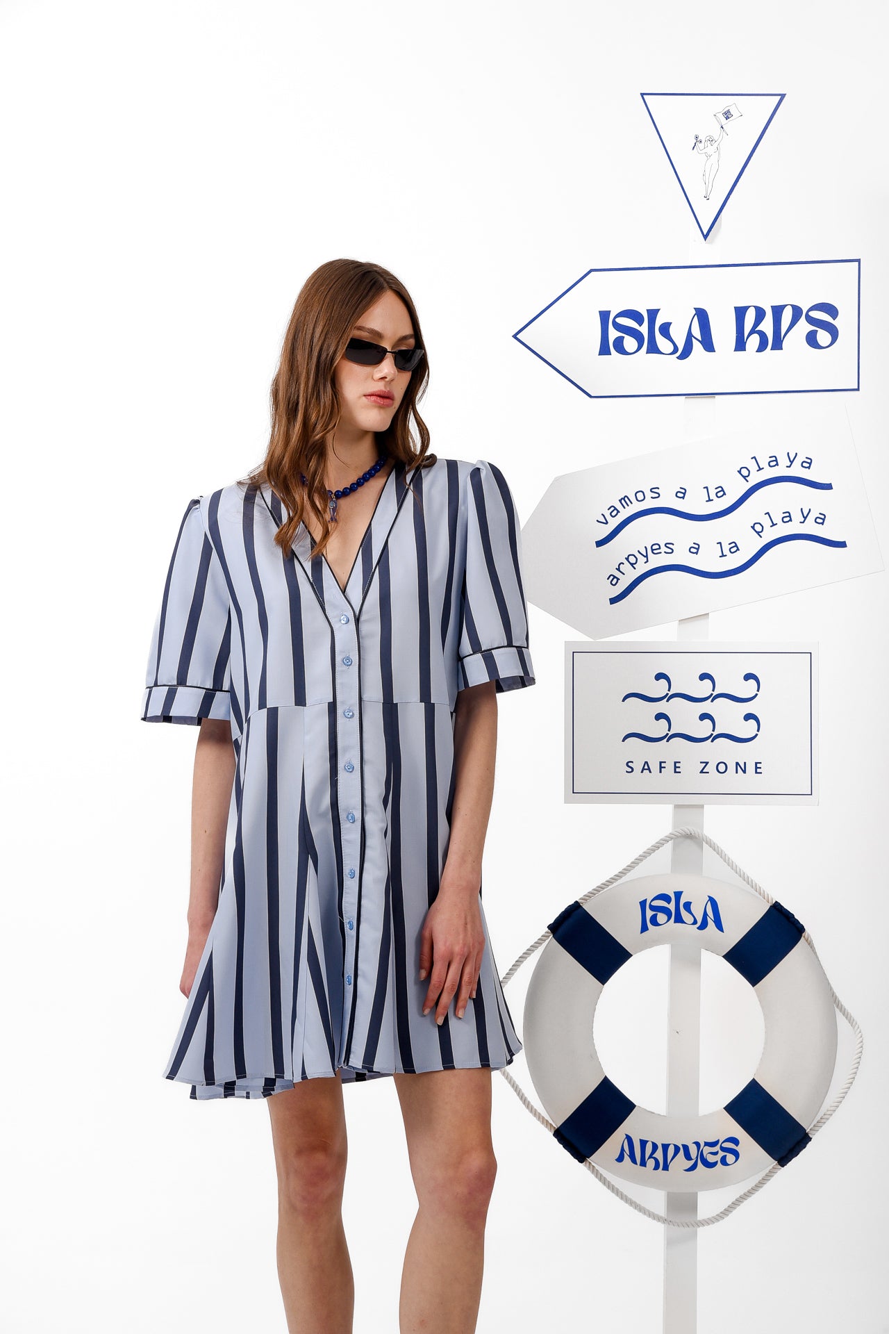 Bali Dance Dress is a lightweight striped mini designed with a playful, fluid silhouette that moves effortlessly with the body. Inspired by a relaxed shirt style, it features a soft V neckline, short structured sleeves, and a full button front. The removable matching belt allows you to adjust the fit, wear it cinched at the waist or loose for an easy, carefree look. Finished with a gently flared skirt, it’s perfect for warm days, holidays, and sun-filled summer moments.
