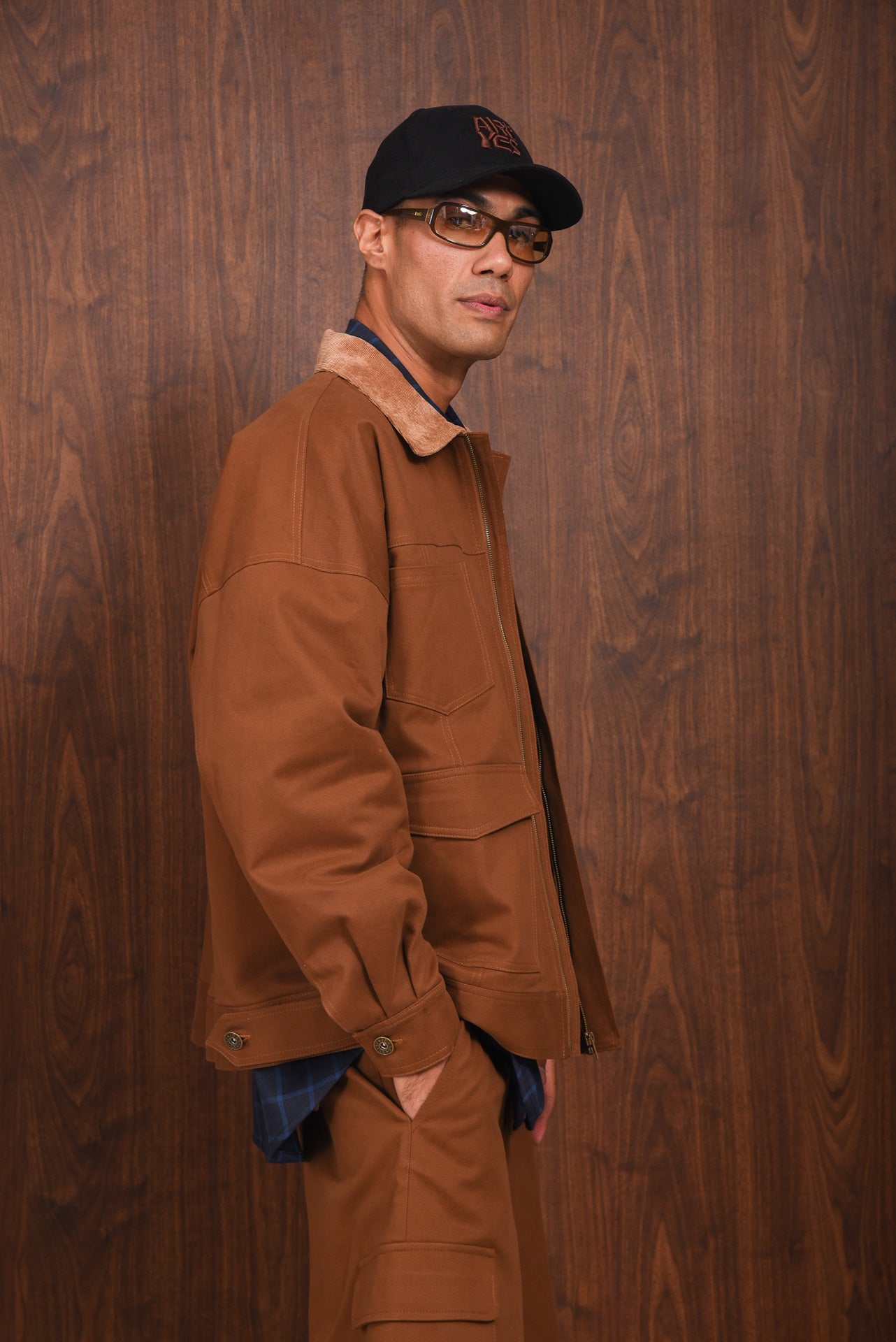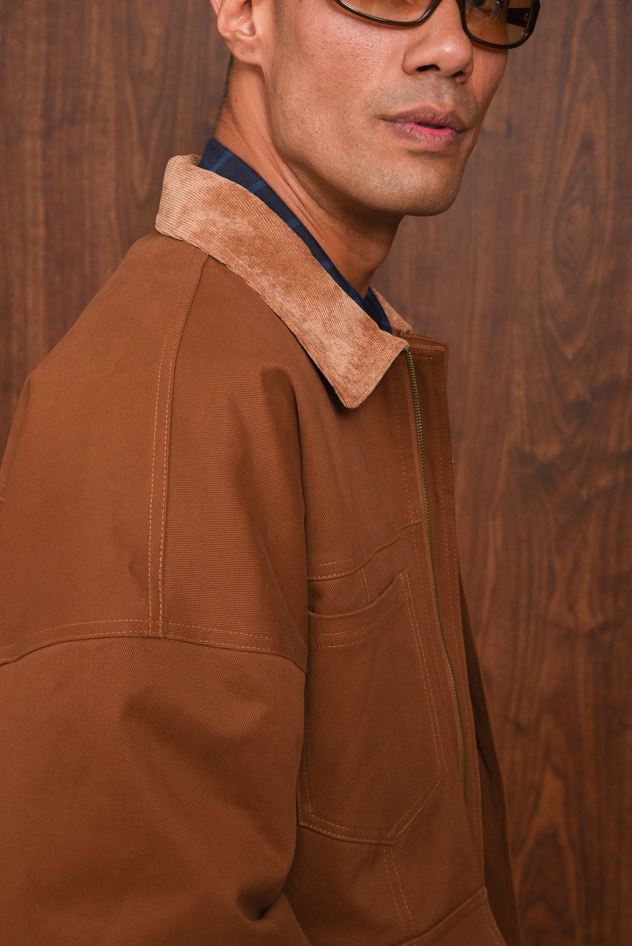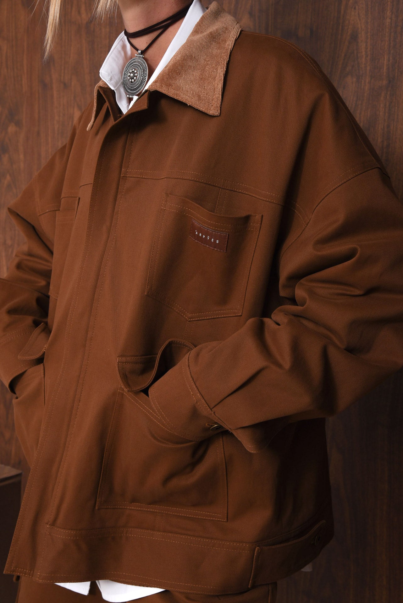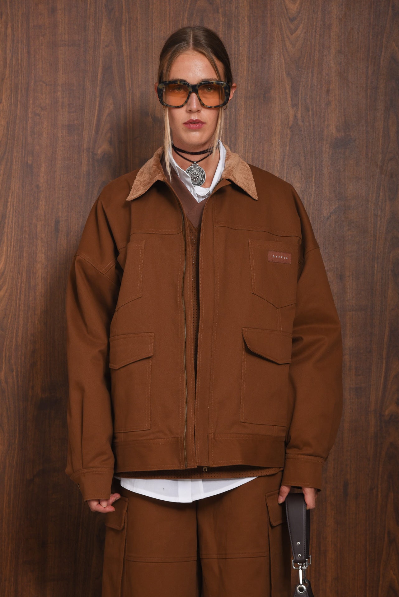 The Obsessive Jacket blends structure with a relaxed attitude. Crafted from heavy cotton twill, it features a soft corduroy collar, front zip closure, and four utility pockets for a functional look. Designed in a relaxed, oversized fit, it combines comfort and structure for an easy, modern look.