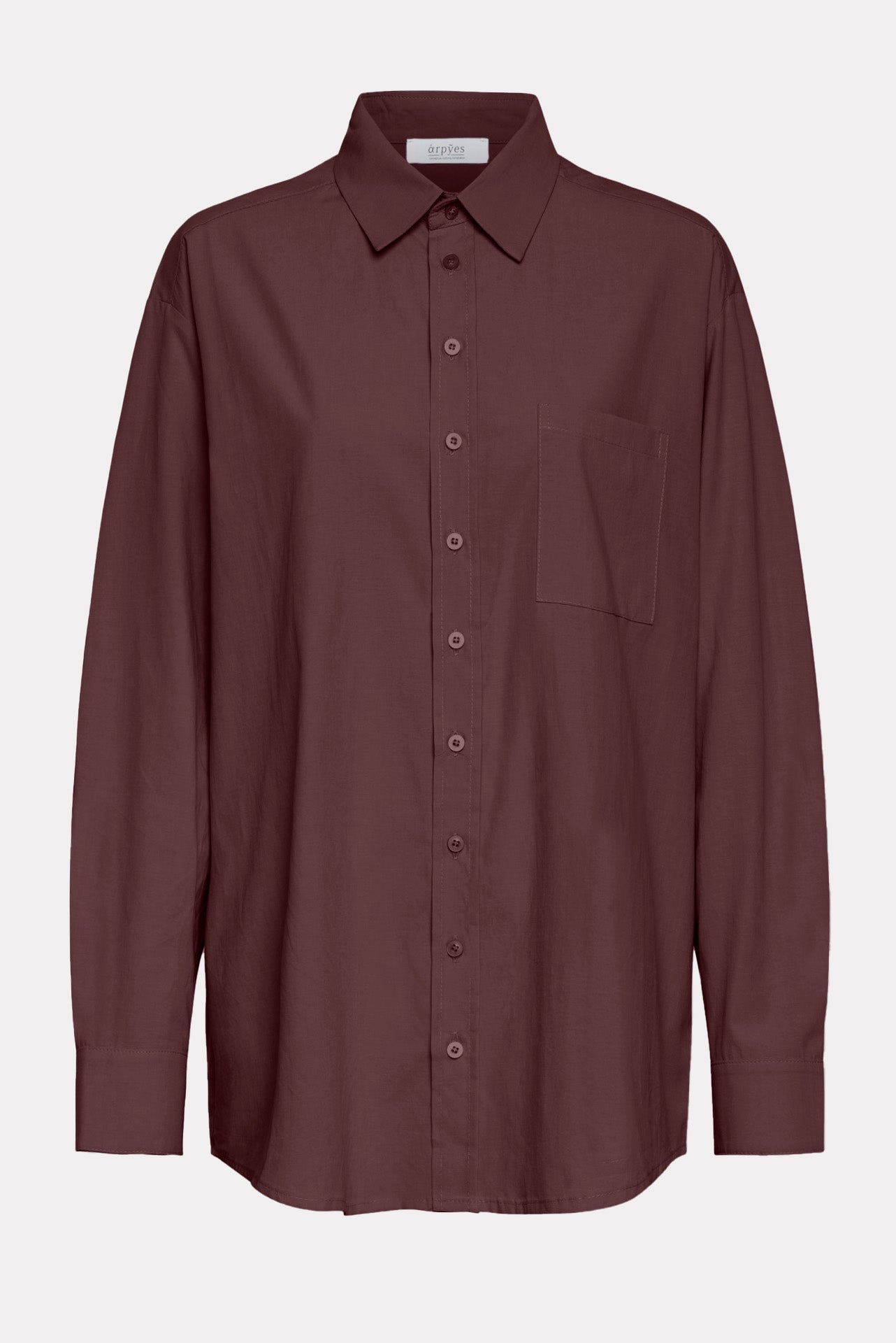 The Accept shirt is a timeless oversized button-up crafted from soft fabric. It features a sharp pointed collar, long sleeves with buttoned cuffs, and a single chest pocket. Designed with a relaxed fit, it falls longer at the back than the front, creating an effortless silhouette.
