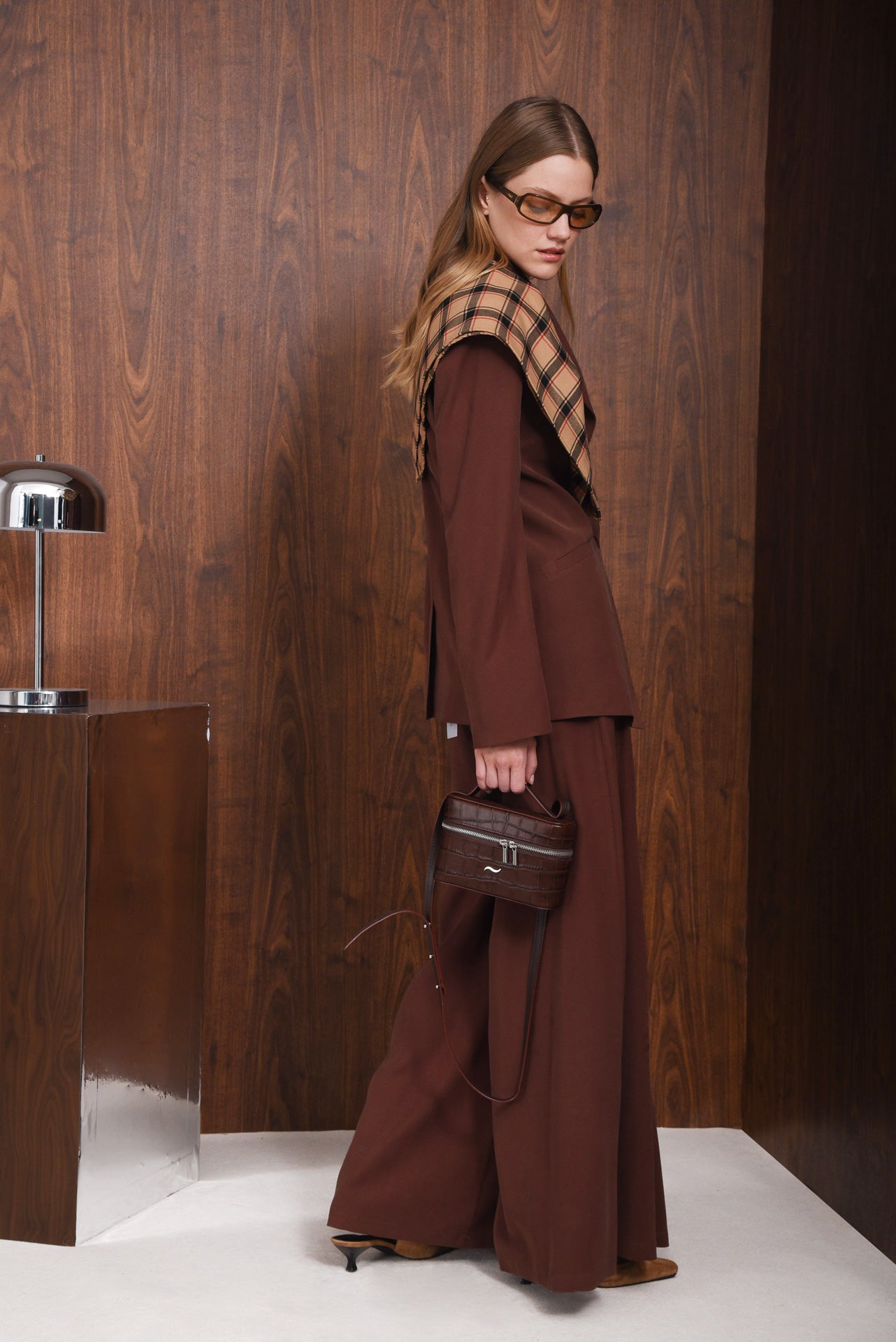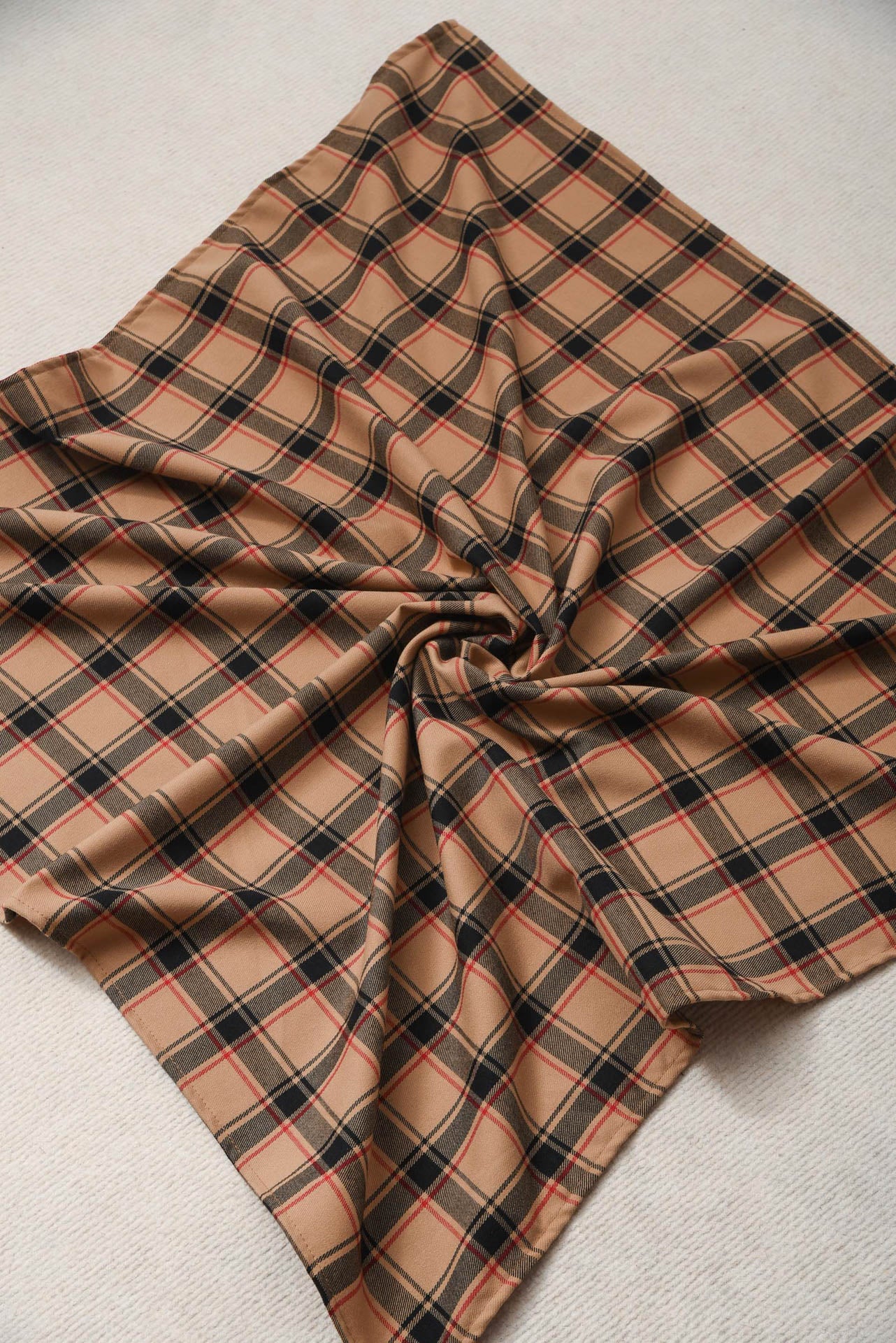 The Affect Scarf is a square-shaped accessory crafted from soft, lightweight fabric with a classic checked plaid pattern. Its smooth texture and fluid drape make it easy to style around the neck, shoulders, or bag. A timeless piece that adds polish to everyday and smart looks.