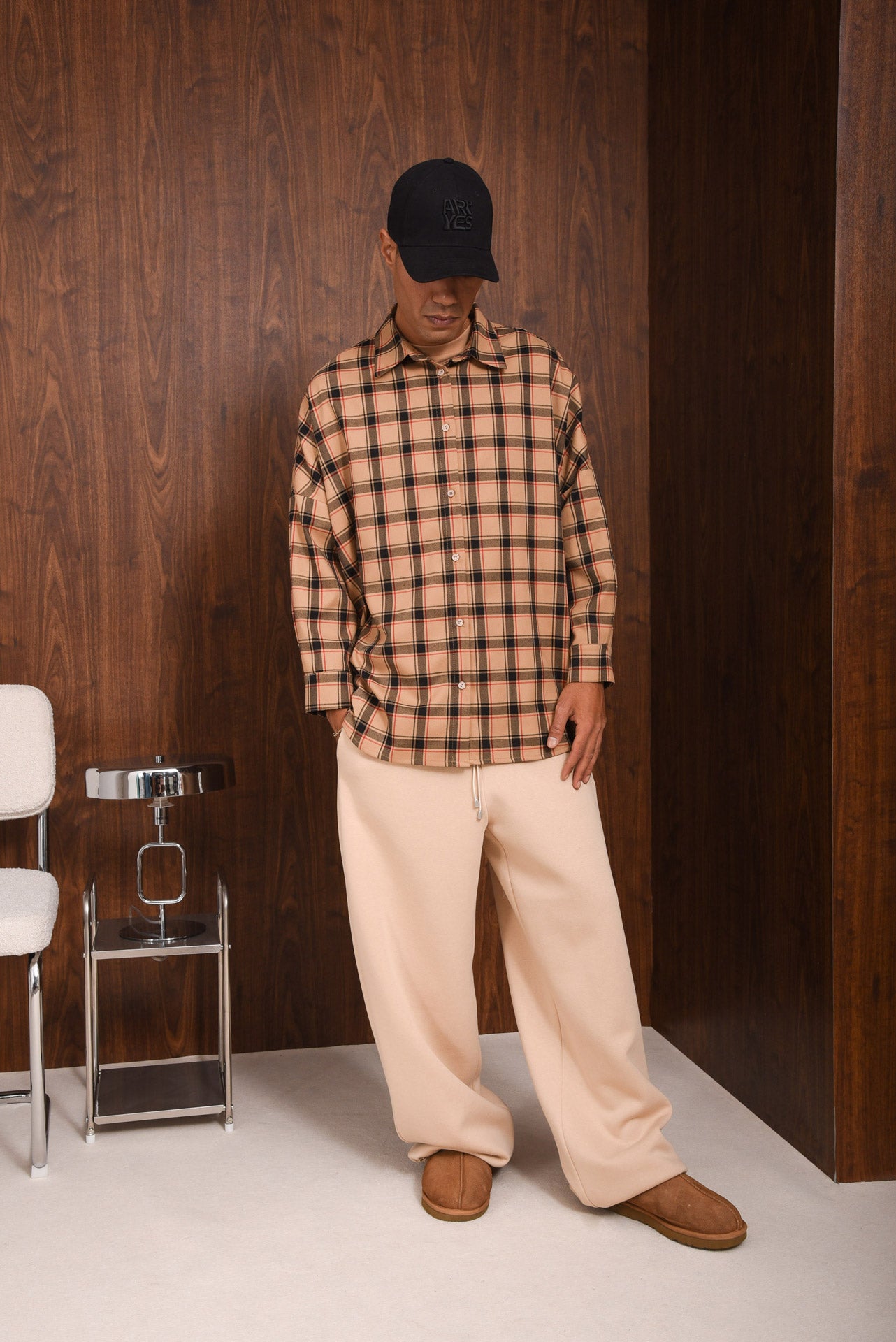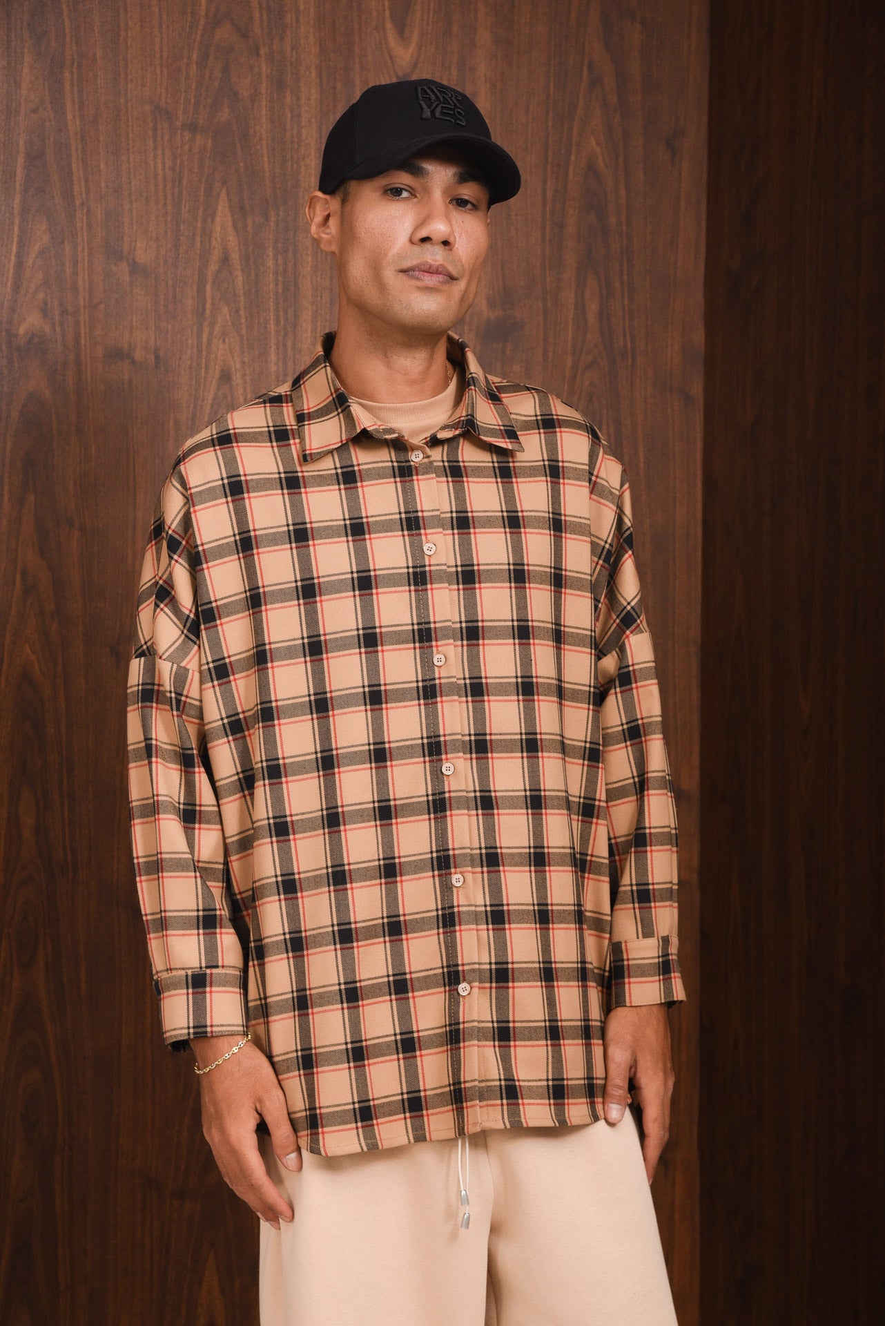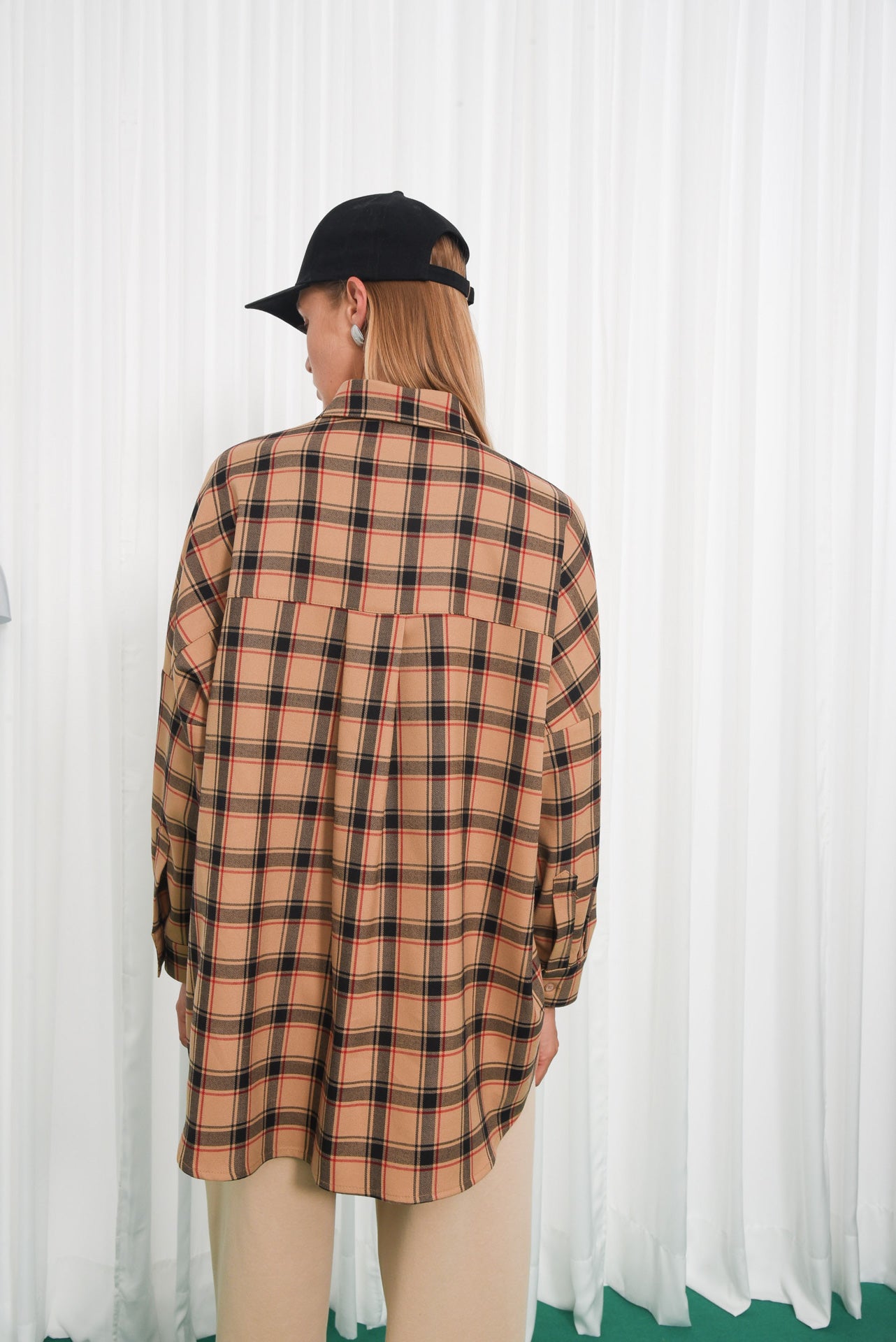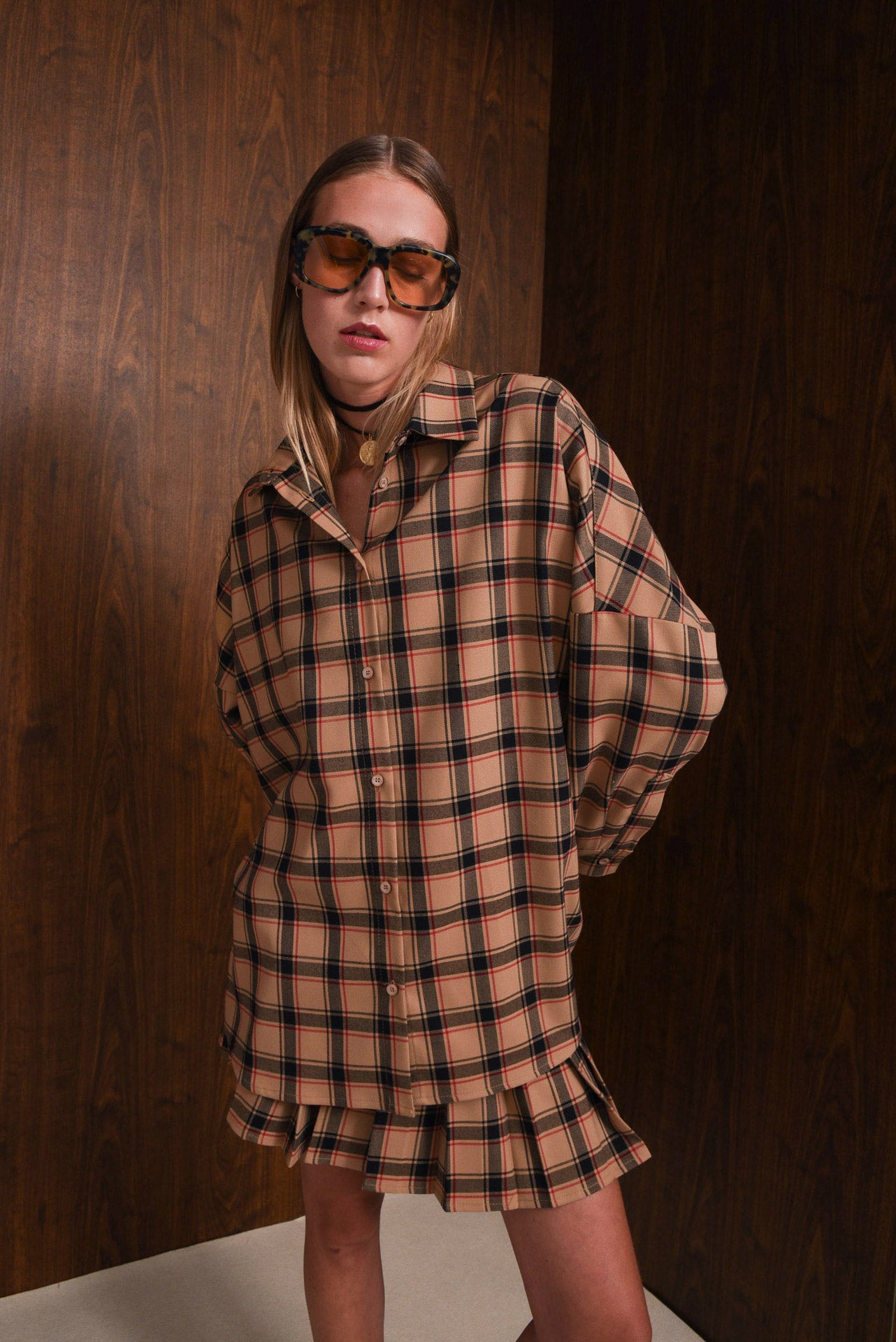 The Affect Shirt features an oversized fit with dropped shoulders, a pointed collar, and a full button-down front. Made from soft checked fabric, it includes long sleeves with buttoned cuffs and a curved hem that’s slightly longer at the back. Comfortable and versatile, it pairs easily with jeans, skirts, or tailored pieces.
