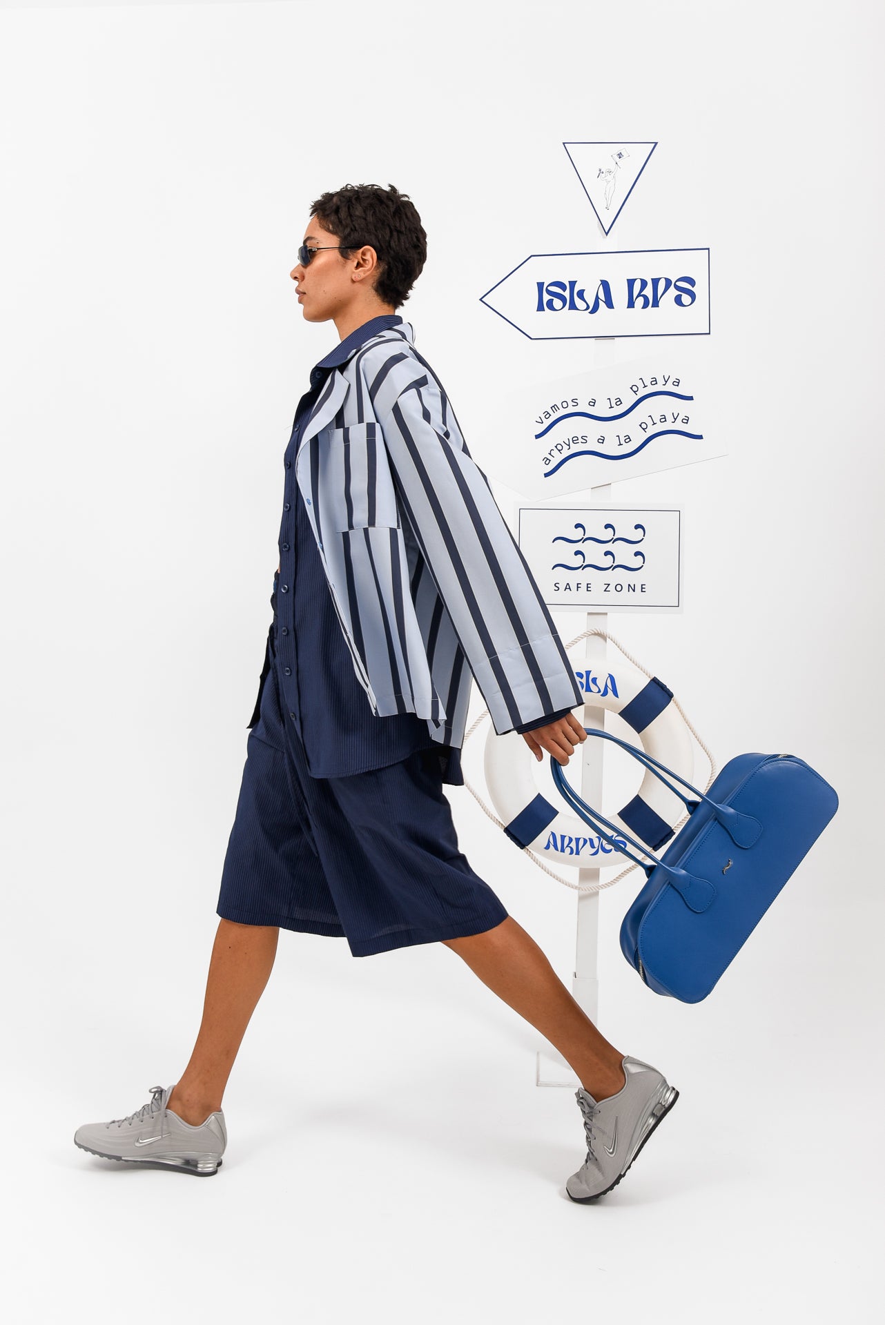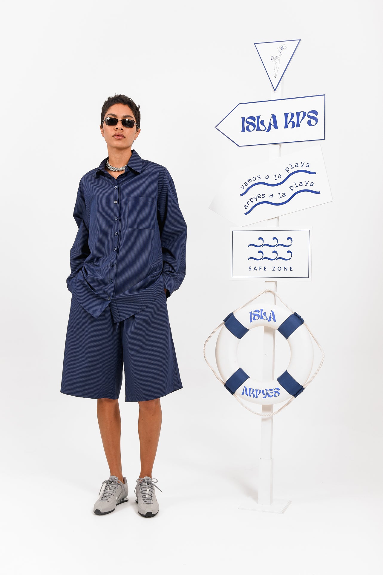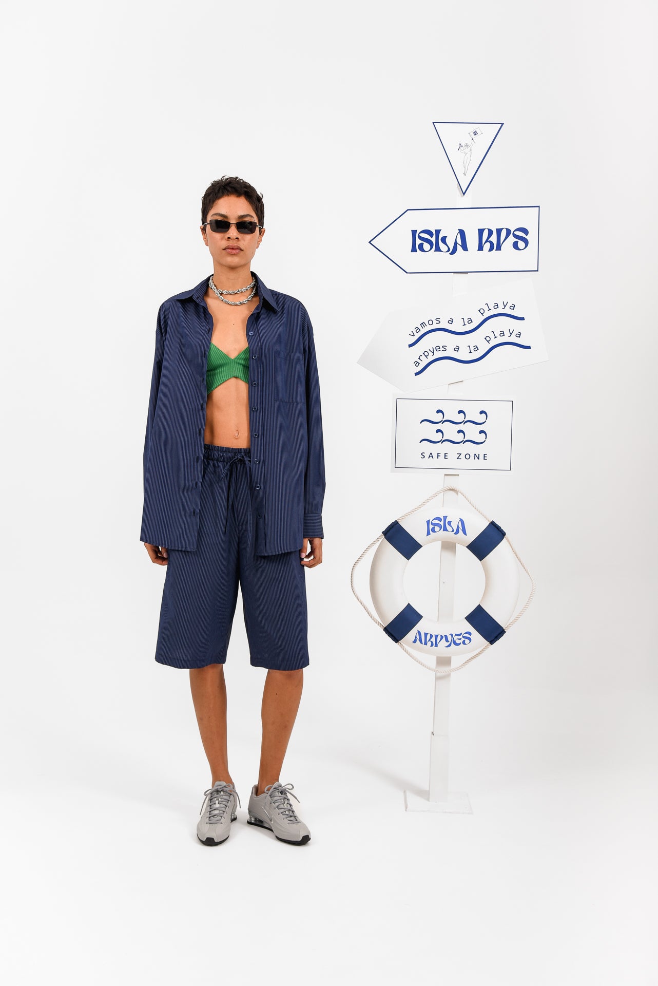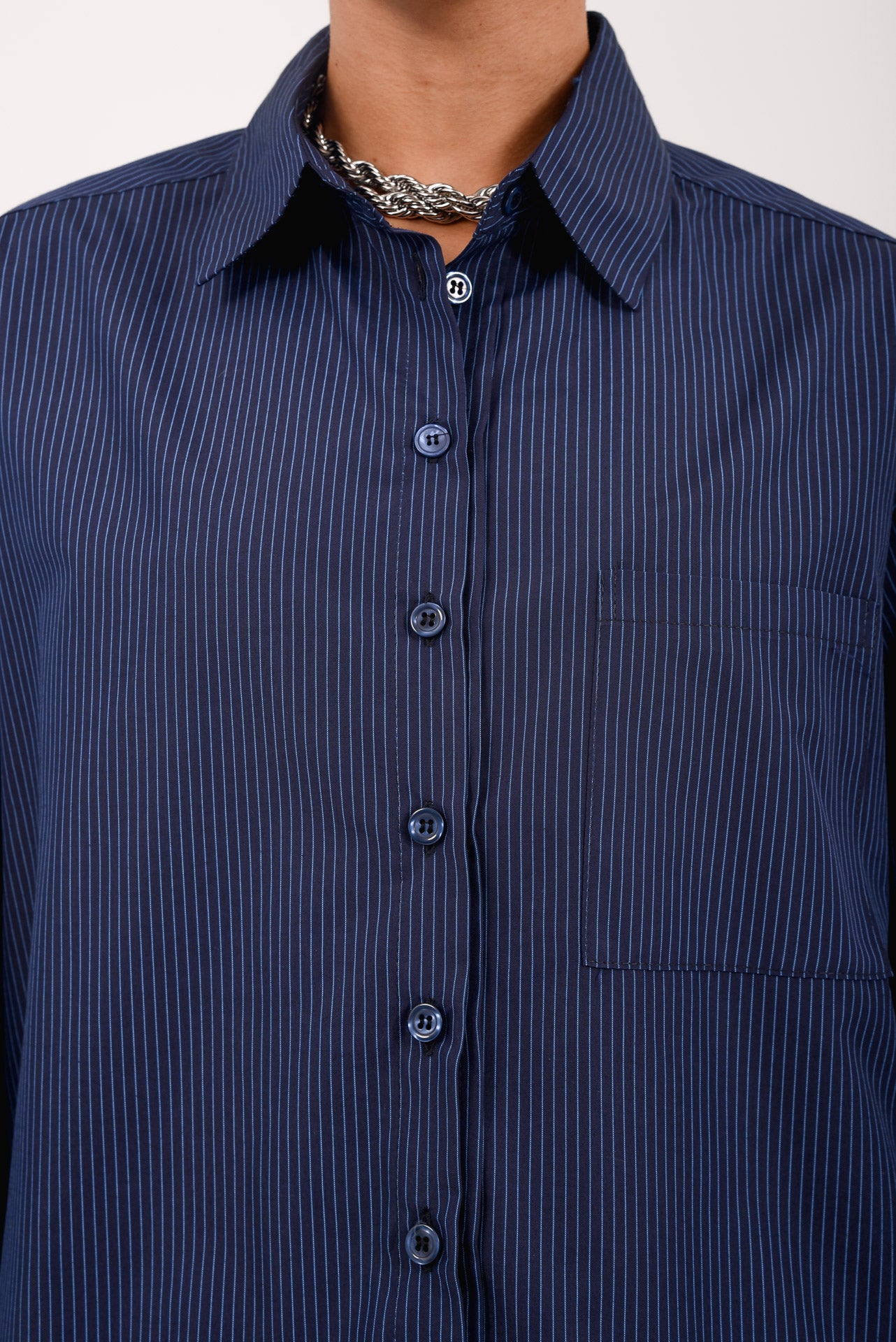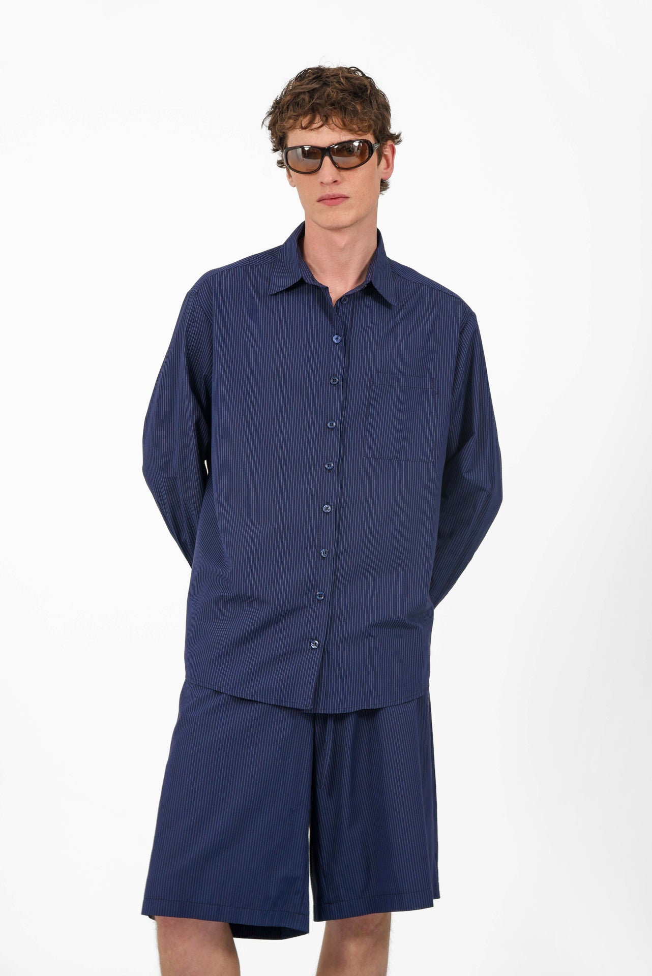 Azul Shirt is a relaxed button-up crafted from lightweight striped fabric, designed for effortless comfort and versatility. Featuring a classic collar, front button closure and a chest pocket, its easy silhouette allows fluid movement and laid-back styling. Wear it open over a bra or swimwear paired with matching shorts, or buttoned up for a refined yet casual everyday look.
