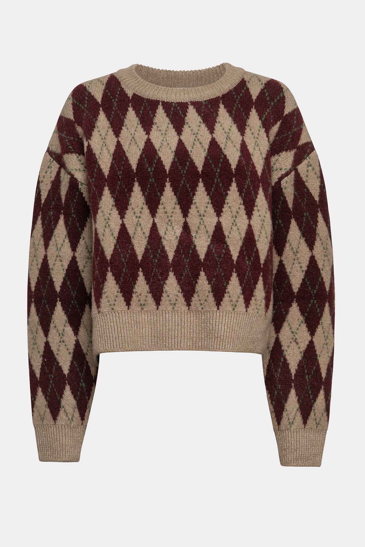 The Balance pullover features a classic argyle pattern, a round neckline, and long, relaxed sleeves. Its fit is slightly cropped with a ribbed hem and ribbed cuffs for structure. Soft and warm, it layers easily over shirts or tops. A simple, timeless knit designed for everyday comfort and style.