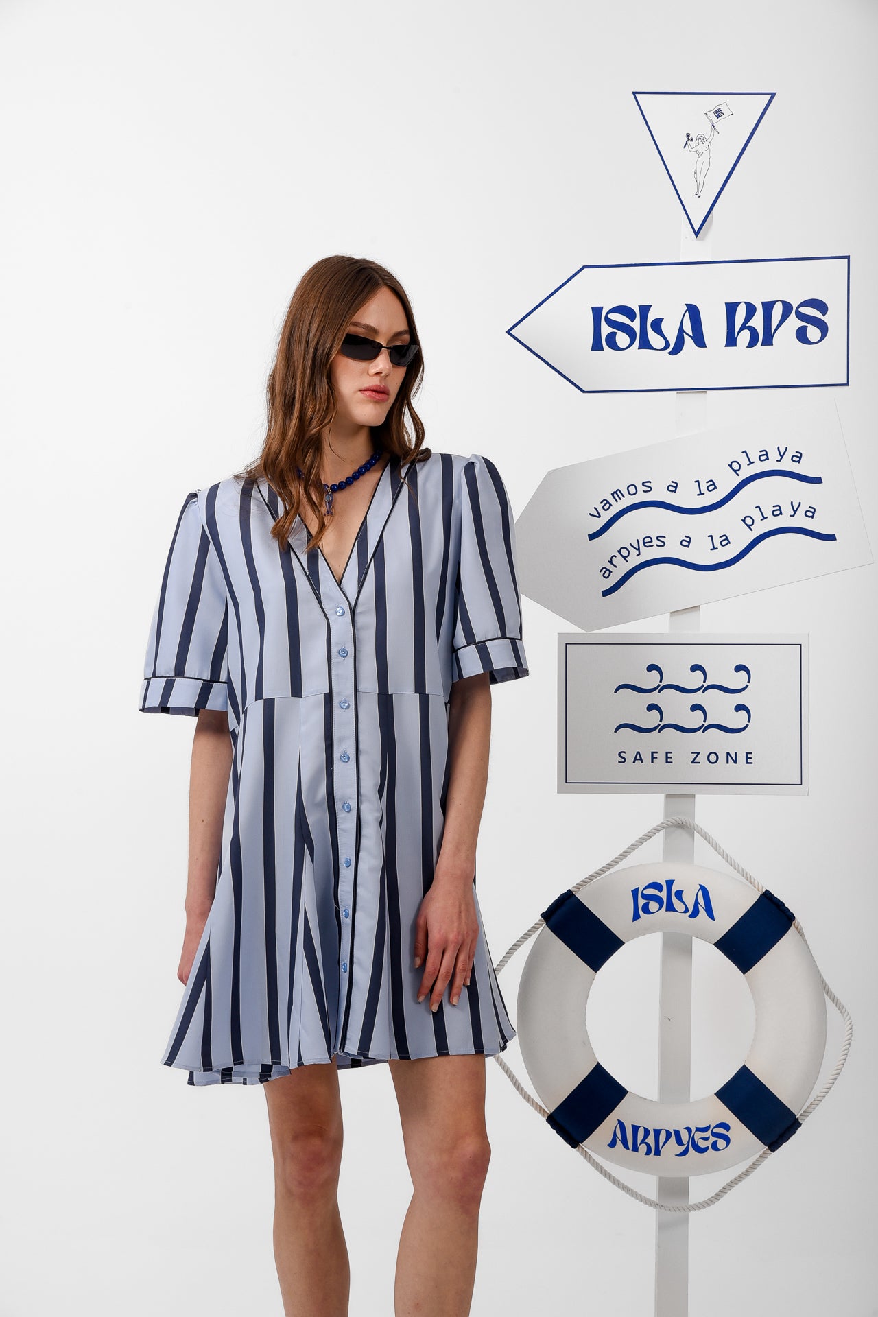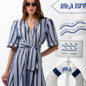 Bali Dance Dress is a lightweight striped mini designed with a playful, fluid silhouette that moves effortlessly with the body. Inspired by a relaxed shirt style, it features a soft V neckline, short structured sleeves, and a full button front. The removable matching belt allows you to adjust the fit, wear it cinched at the waist or loose for an easy, carefree look. Finished with a gently flared skirt, it’s perfect for warm days, holidays, and sun-filled summer moments.
