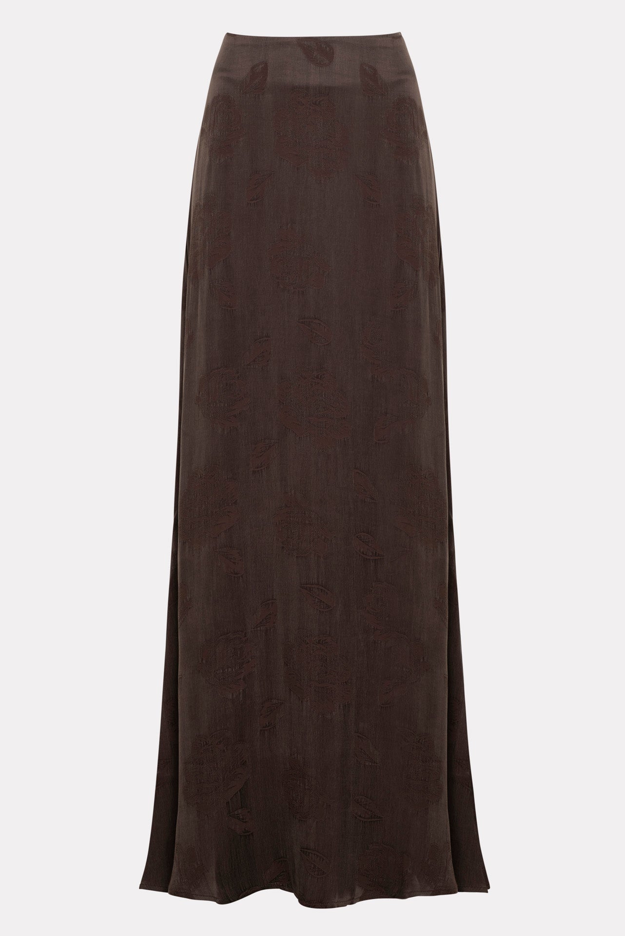 The Inner Voice maxi skirt is made from jacquard fabric with a delicate floral pattern. It has a fitted waist, flows softly to the floor, and closes with a hidden back zipper. A timeless, versatile piece for any occasion.