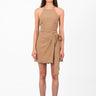 High-waisted wrap skort designed for a clean, feminine silhouette. Featuring an asymmetric front panel with soft draping and a side tie closure, it blends the elegance of a skirt with the comfort of shorts. Crafted from lightweight fabric for ease and movement, it’s a versatile piece for effortless everyday styling.
