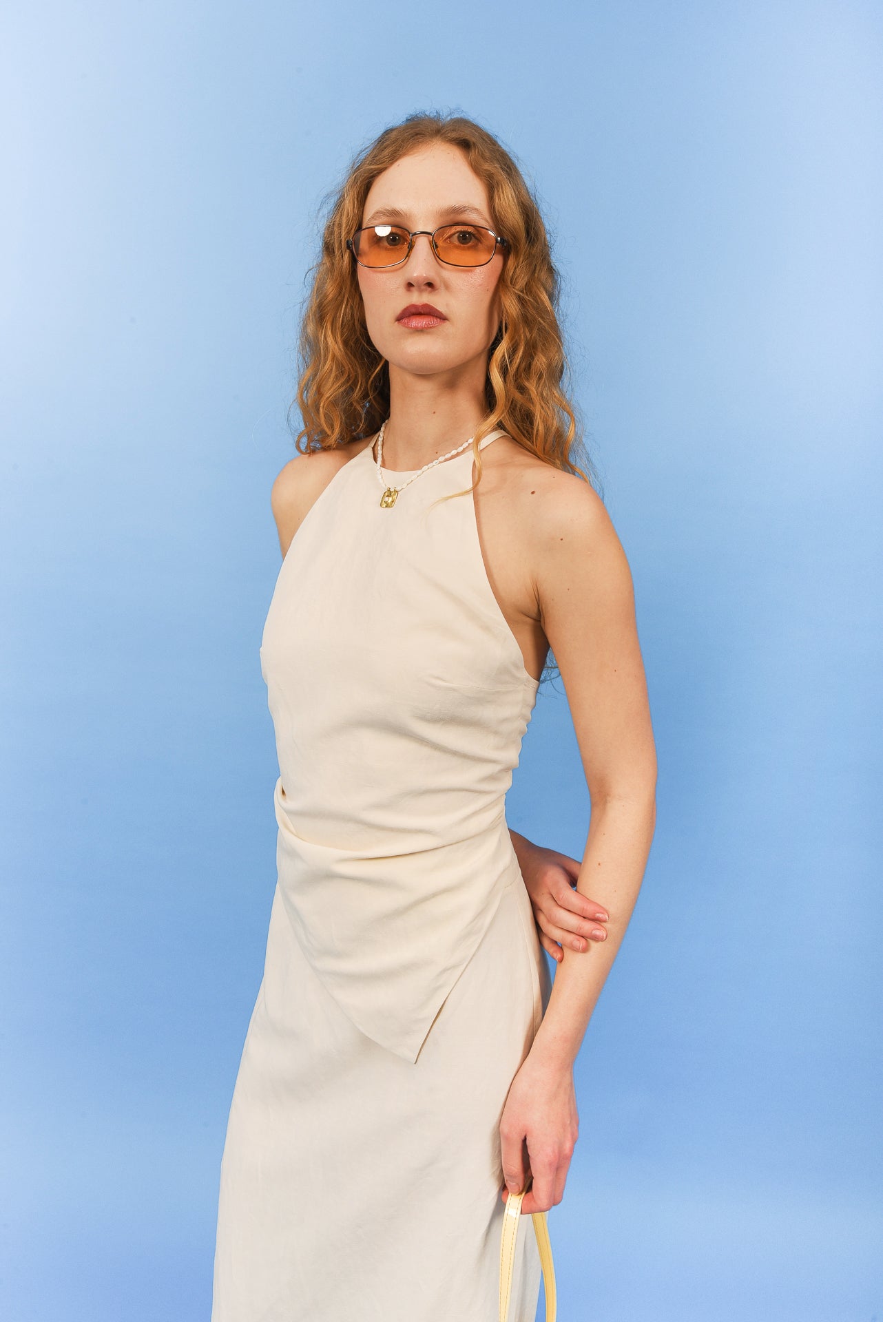 June Top is a refined halter-style piece designed to softly sculpt the silhouette. Crafted from lightweight fabric, it features a clean high neckline, a fitted bodice, and an adjustable lace-up back for a customizable fit. Elegant and minimal, it pairs effortlessly with the June Pants, Maxi Skirt or Skort for elevated summer and occasion dressing.