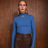 The Maybe Top is a fitted ribbed knit with a soft texture and clean silhouette. Designed with a mock neck and long sleeves, it offers a refined base for everyday styling. Its minimal design and stretch fabric provide comfort and versatility, ideal for layering or wearing alone.