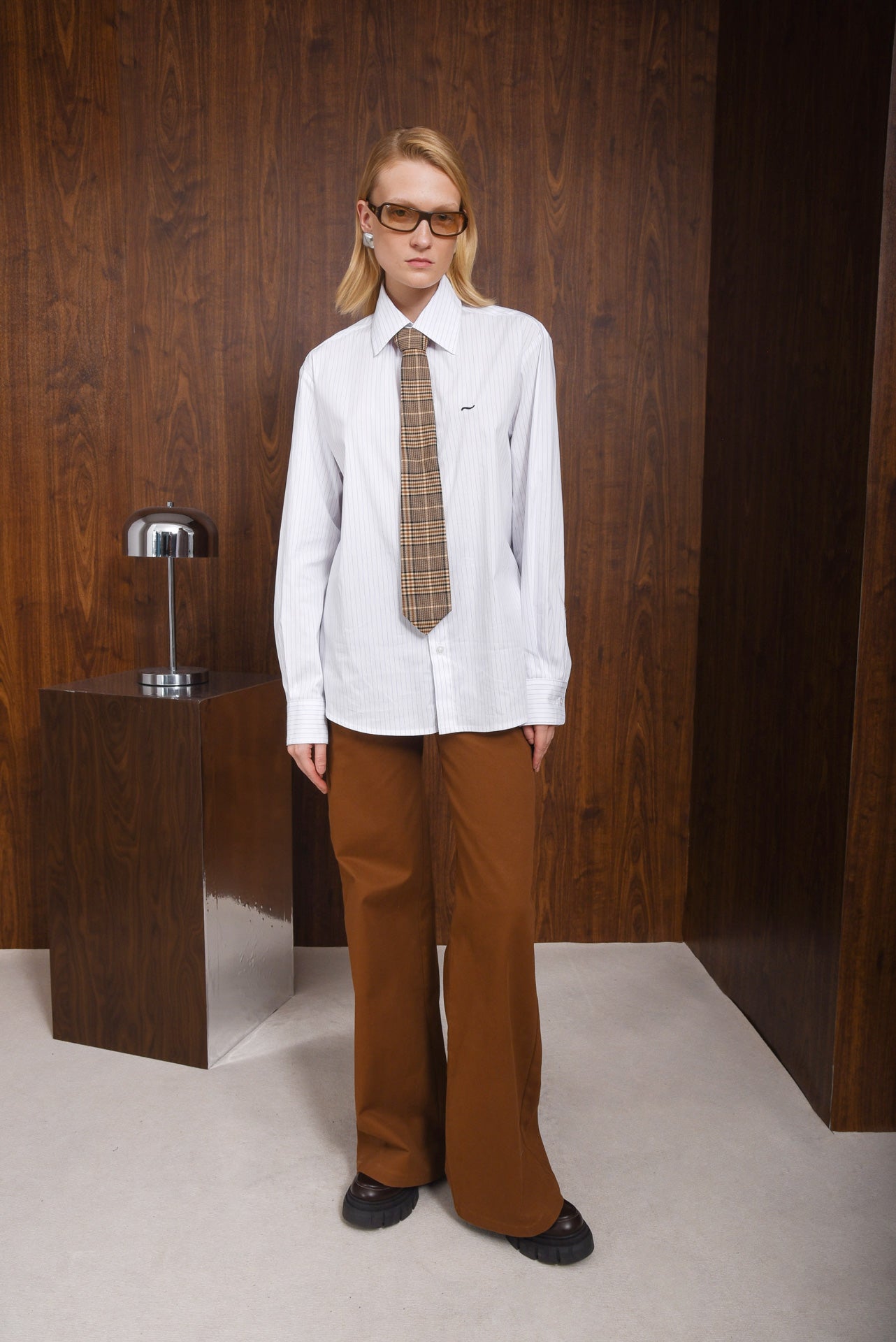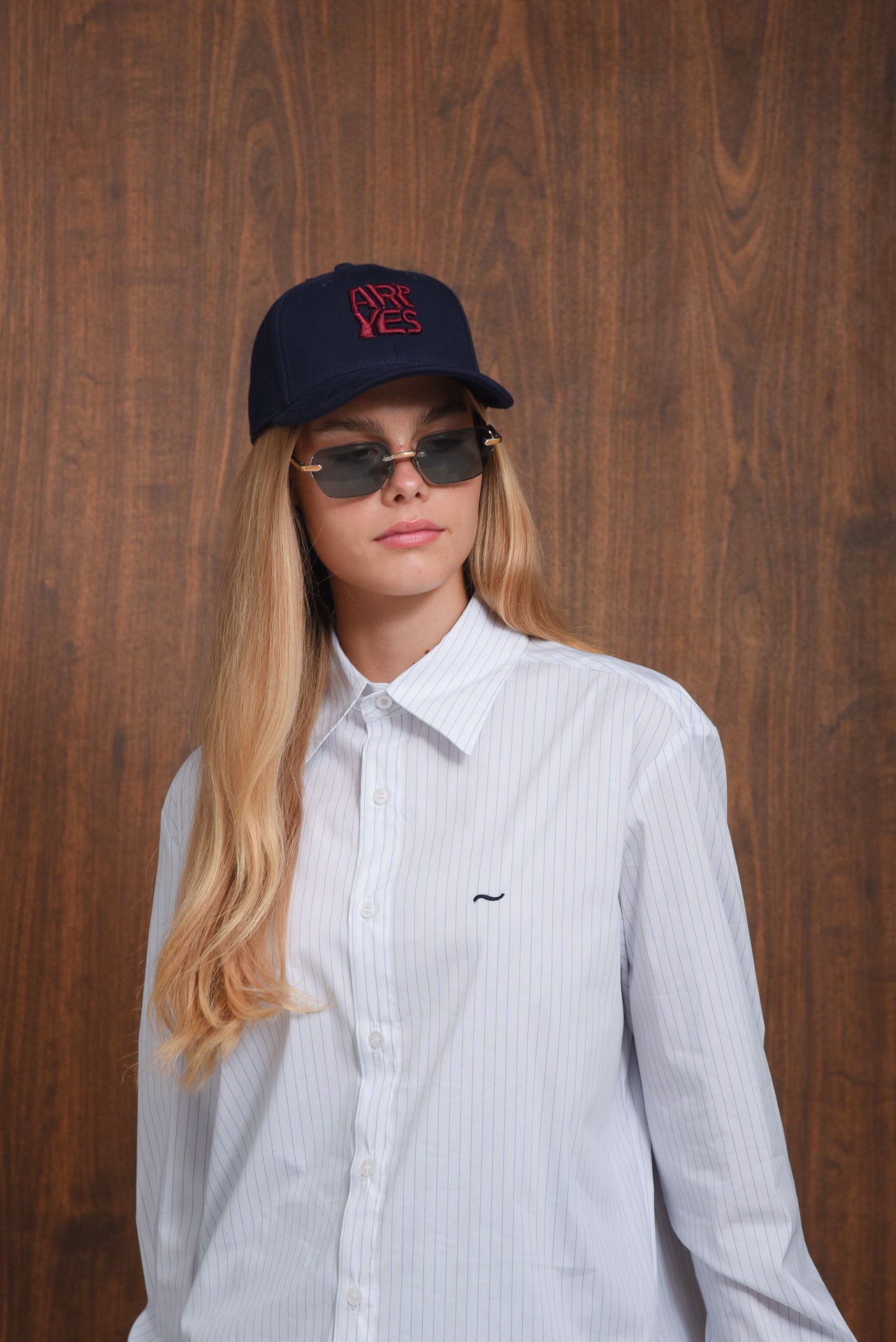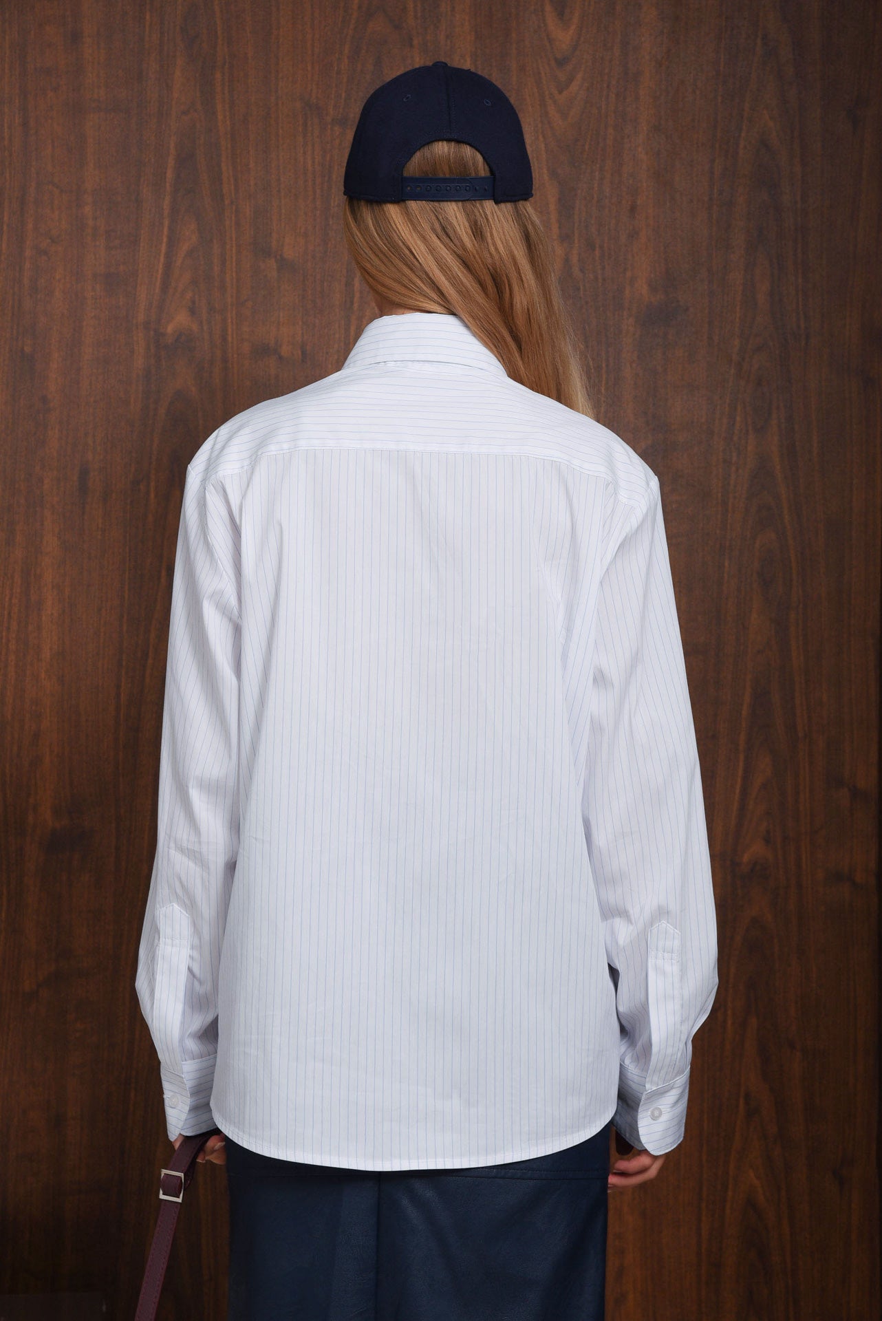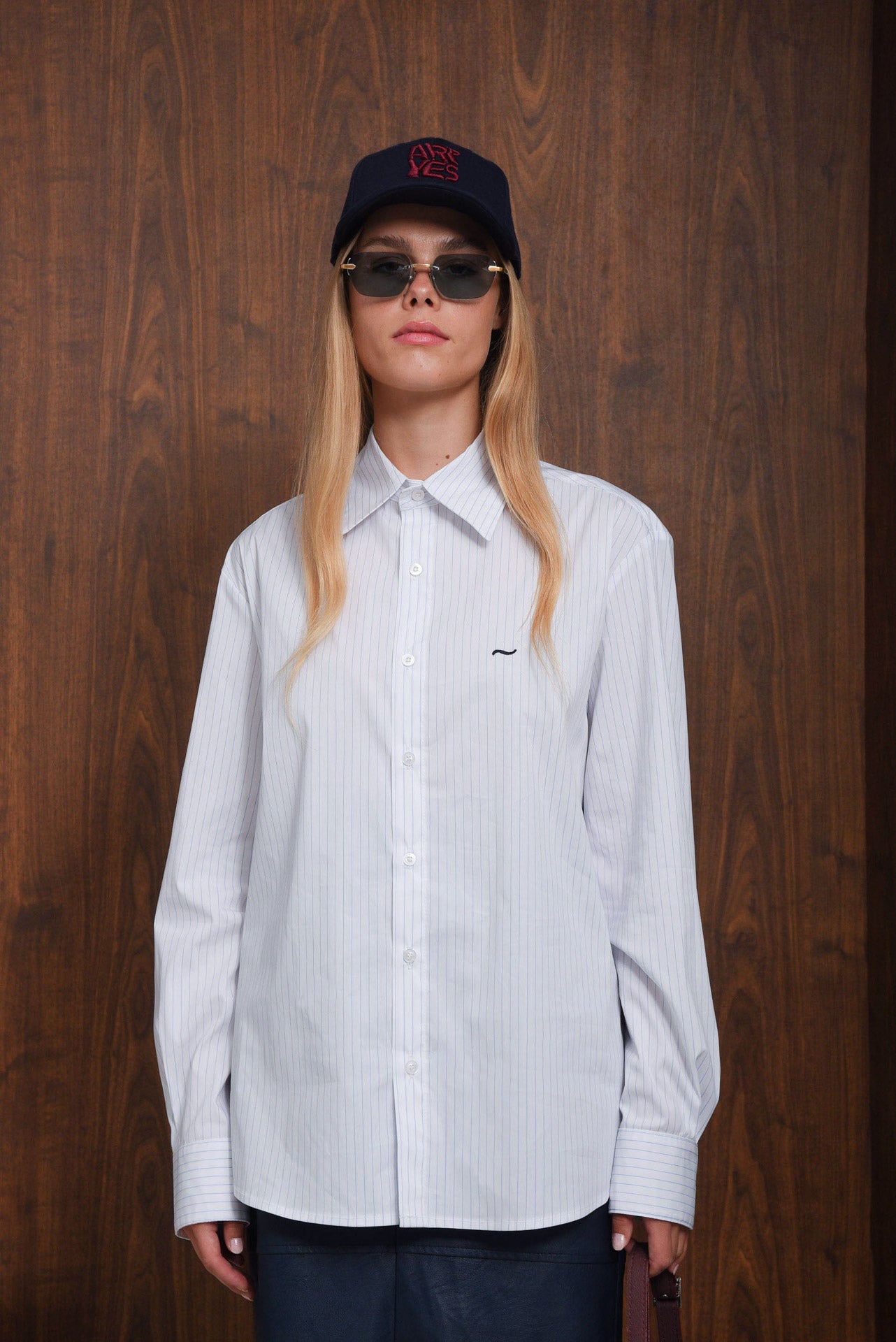 Mighty Shirt, a timeless striped shirt made from fabric-blend. It features a relaxed fit, classic collar, buttoned cuffs, and front button closure. Detailed with fine blue pinstripes and the signature embroidered logo on the chest. Perfect for both tailored and casual outfits.