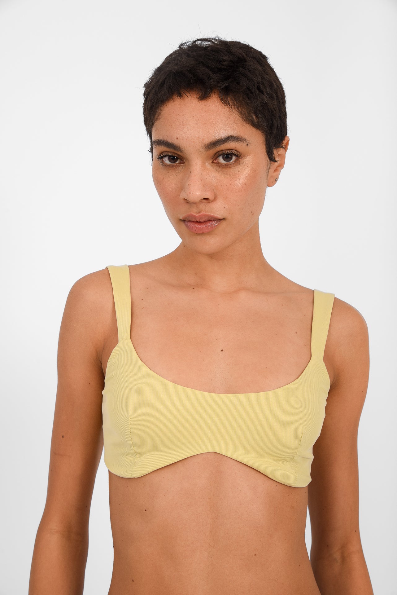 No Plans Bra is a minimal, modern essential designed for comfort and effortless style. Crafted from soft, stretch fabric, it features clean lines, slim straps and a softly sculpted neckline that offers gentle support while maintaining a lightweight feel. Its sleek silhouette makes it perfect to wear on its own or layered under relaxed tailoring, ideal for easy days with no plans at all, from day to night.