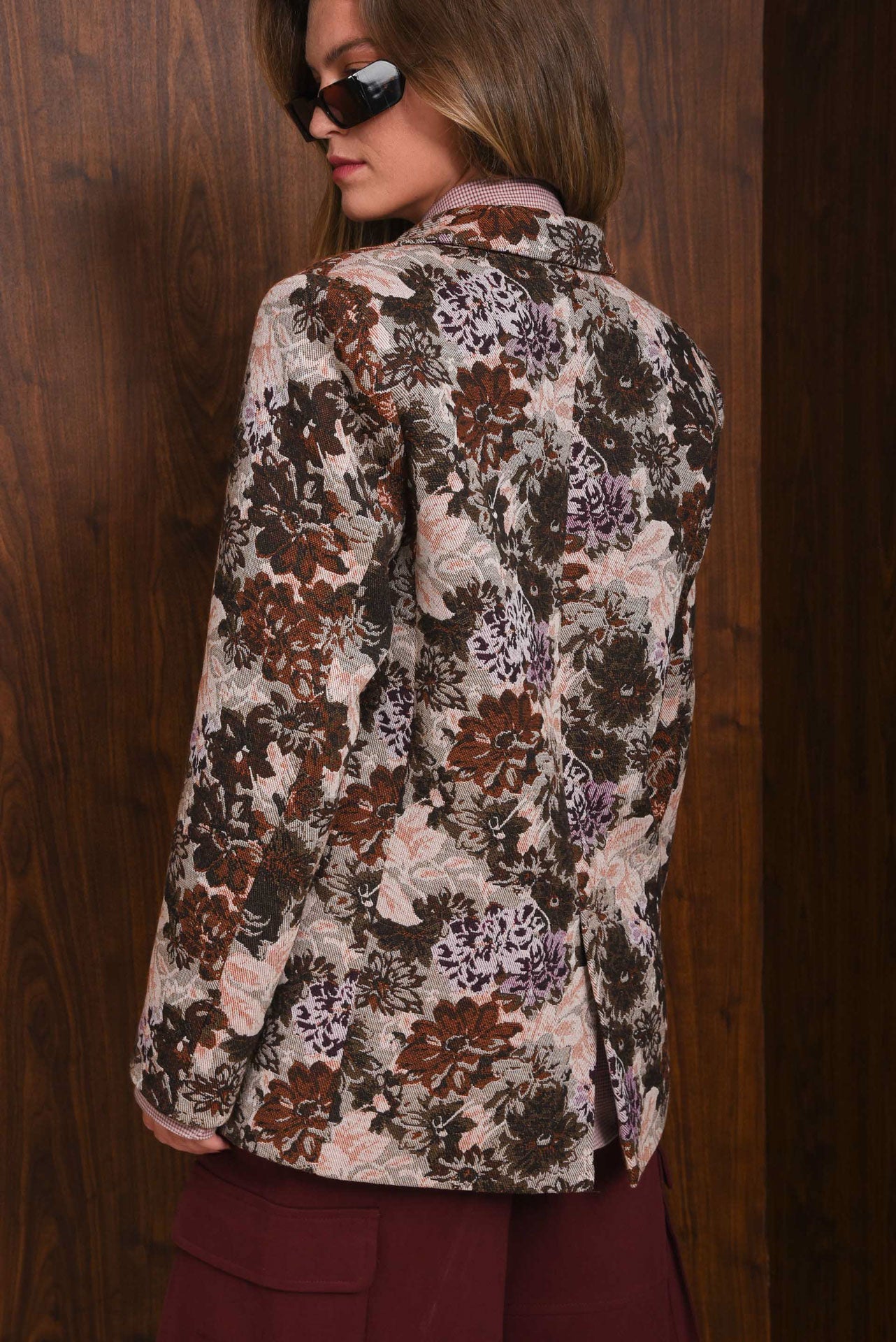 Crafted from textured floral jacquard, the Own Blazer has a straight fit with a structured shoulder line. It features a notched lapel, front button closure, flap pockets, and a back vent. Fully lined for a smooth finish, it blends comfort and elegance, making it a timeless piece for any wardrobe.