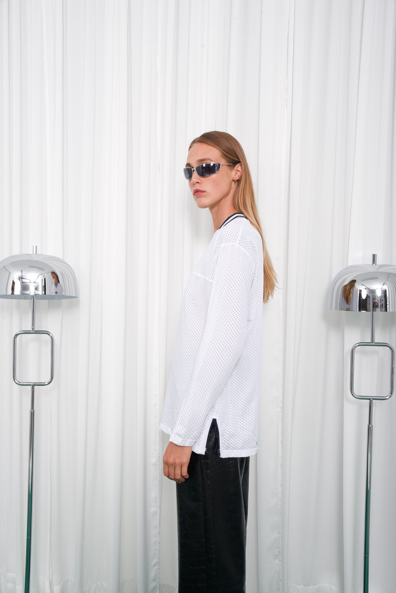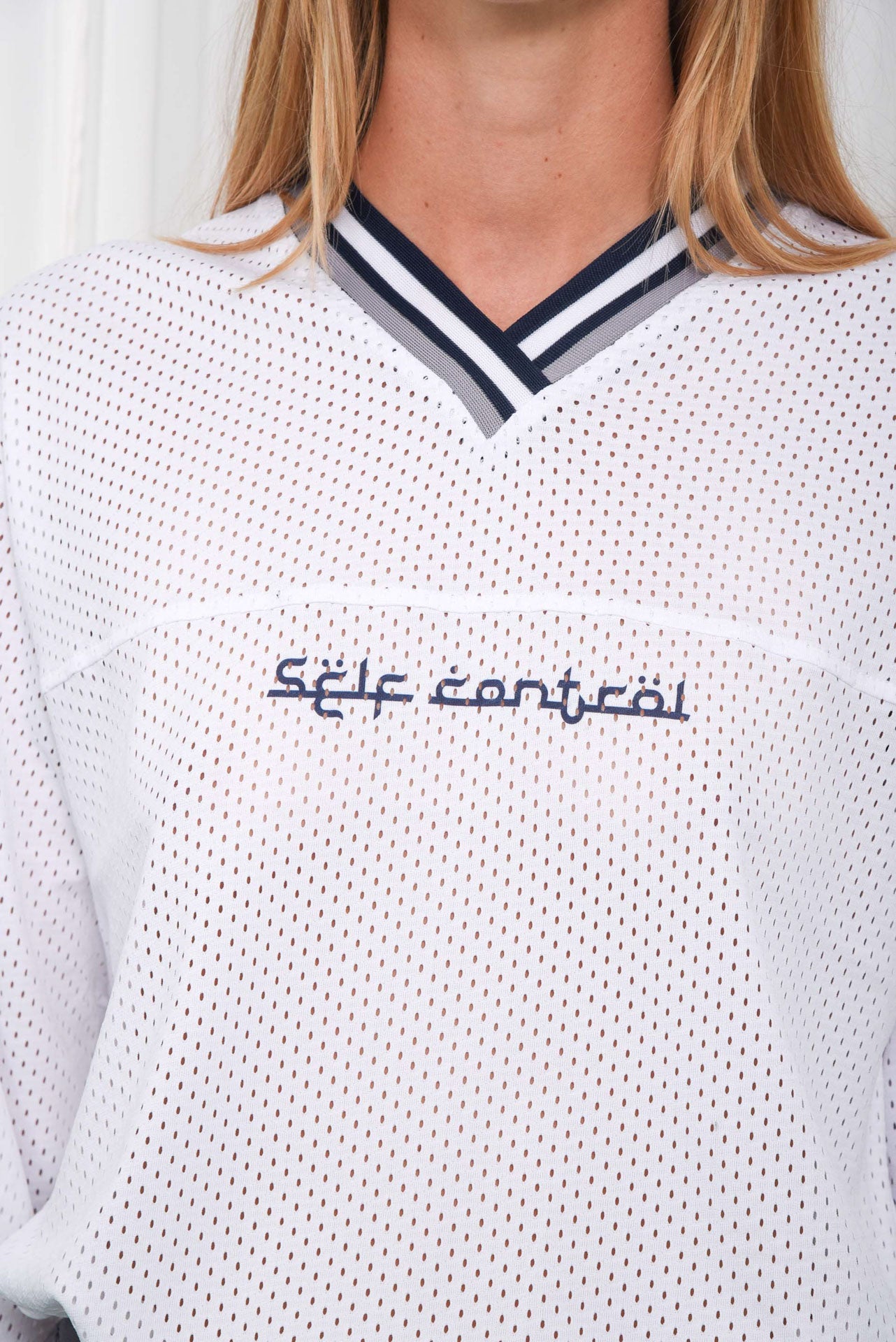 SELF CONTROL LONG SLEEVE MESH BLOUSE