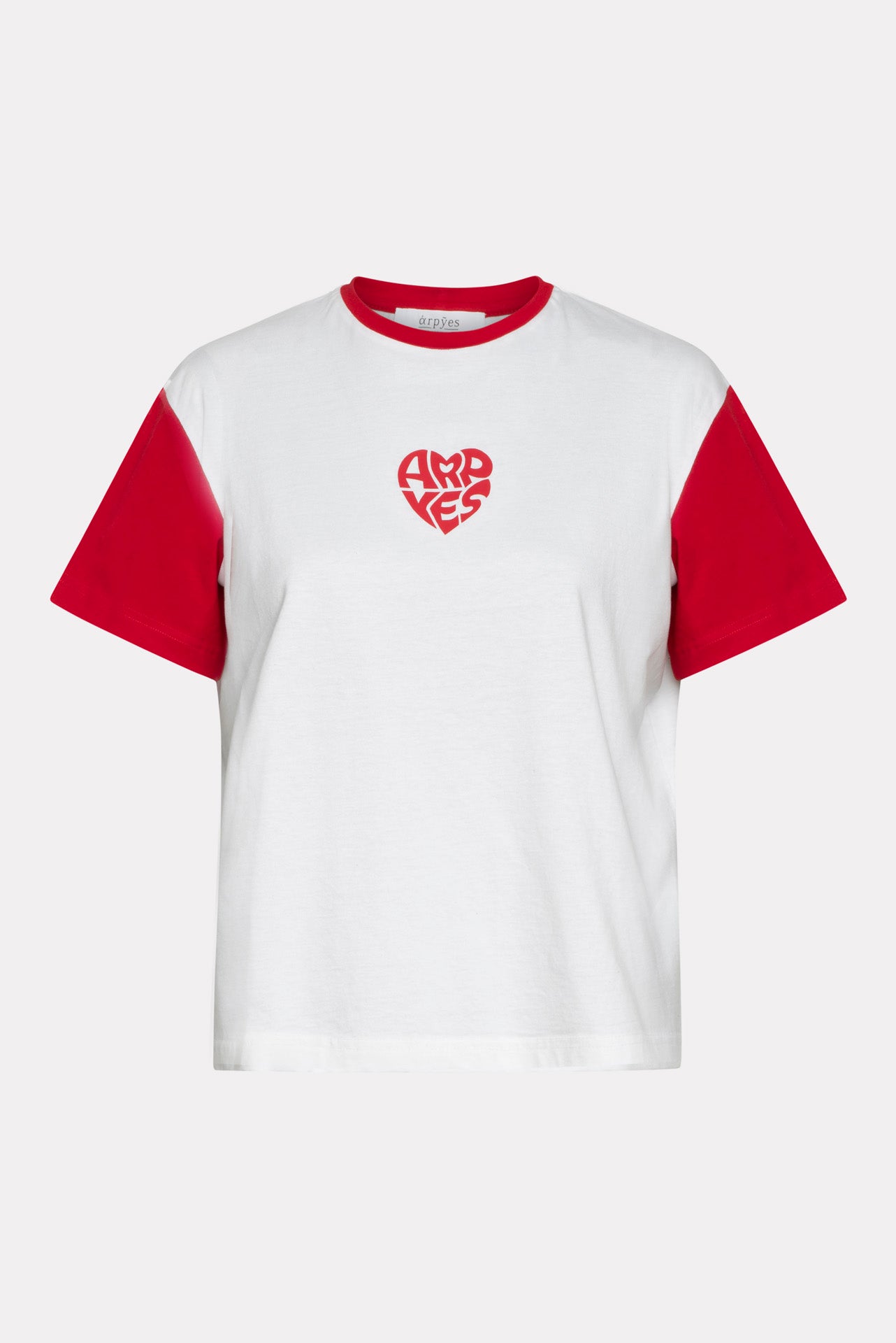 The Stone Heart tee is made of soft organic cotton with a relaxed fit. It has a crew neckline, short sleeves in contrast color, and a straight hem. A bold heart-shaped “ARPYES” print decorates the chest. Comfortable and easy to style, it’s a versatile piece for everyday wear.