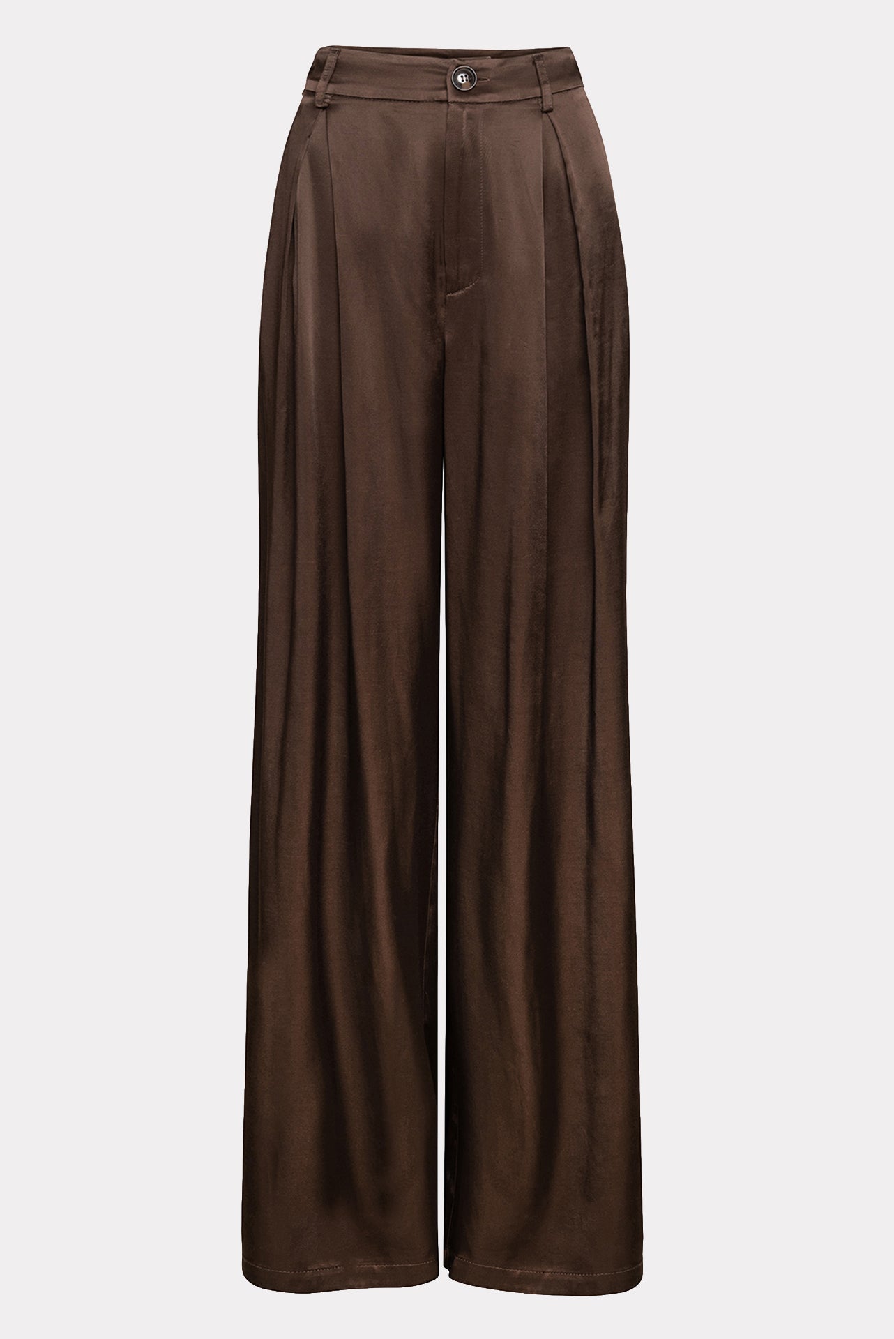 The Vanity Pants are made from a soft, silky fabric with a fluid, wide-leg silhouette. They feature a high waist, front pleats, side pockets, and a clean button-zip closure. Comfortable and elegant, they easily complete both simple and statement looks.